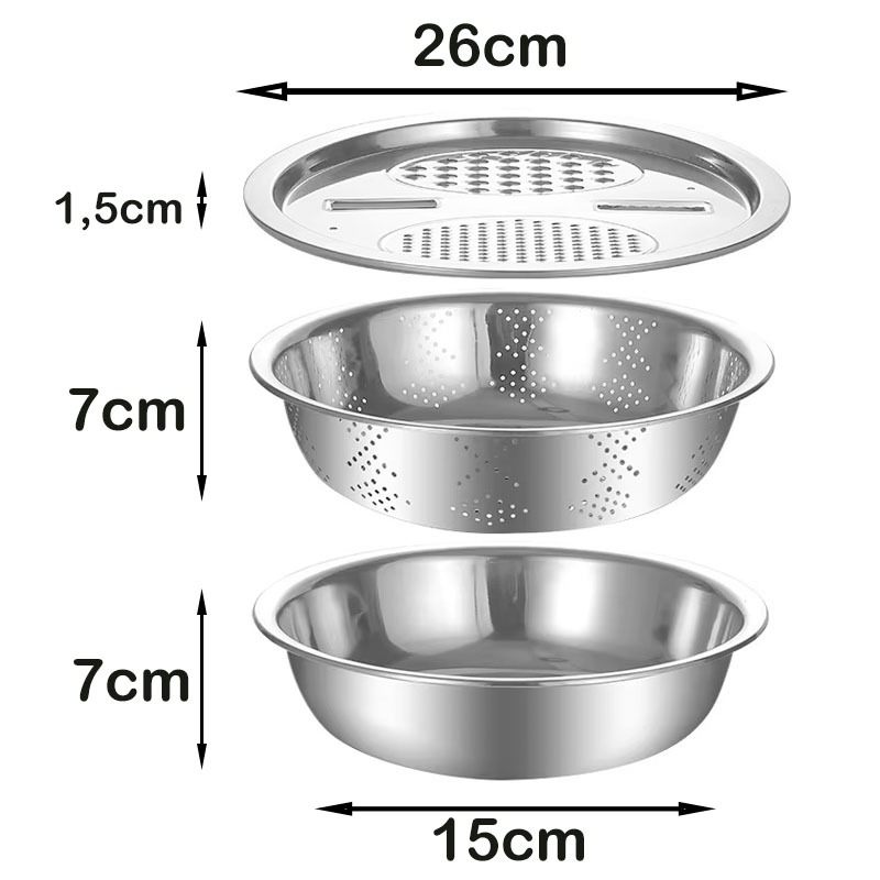 Tigela 3 em 1 Ralador Fatiador Bacia Escorredor Legumes Queijo Manual Cozinha Pratica