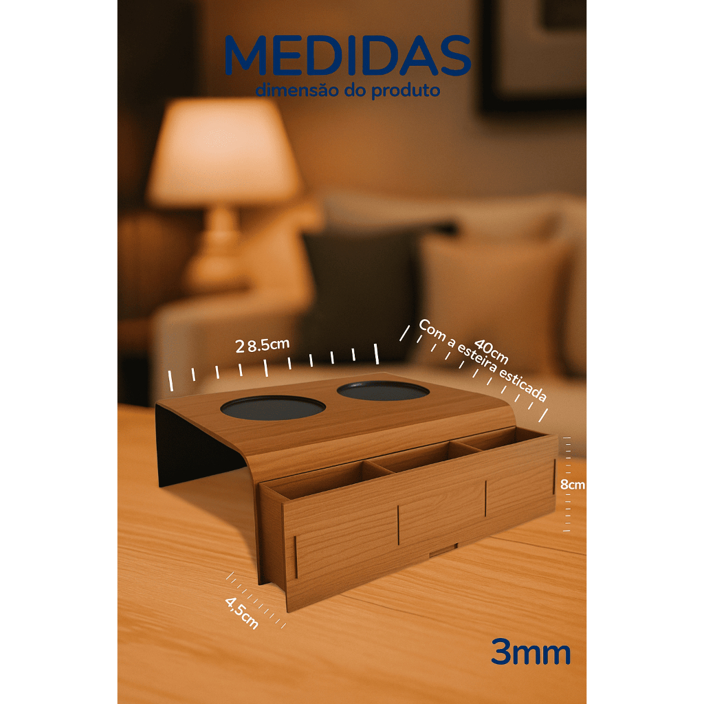 Kit 2 Esteiras para Sofá – Porta-Copos e Suporte para Controle em MDF