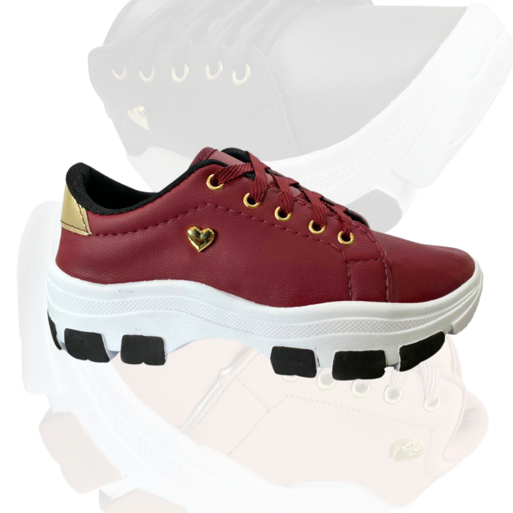 Tênis Casual Feminino Plataforma Vermelho Estiloso Macio Conforto Leve e Super