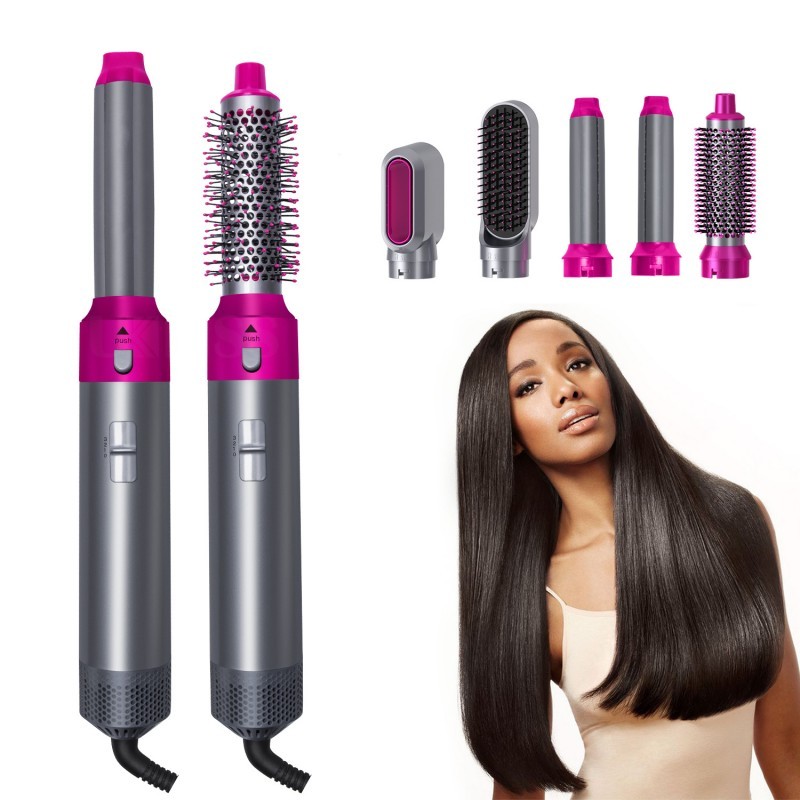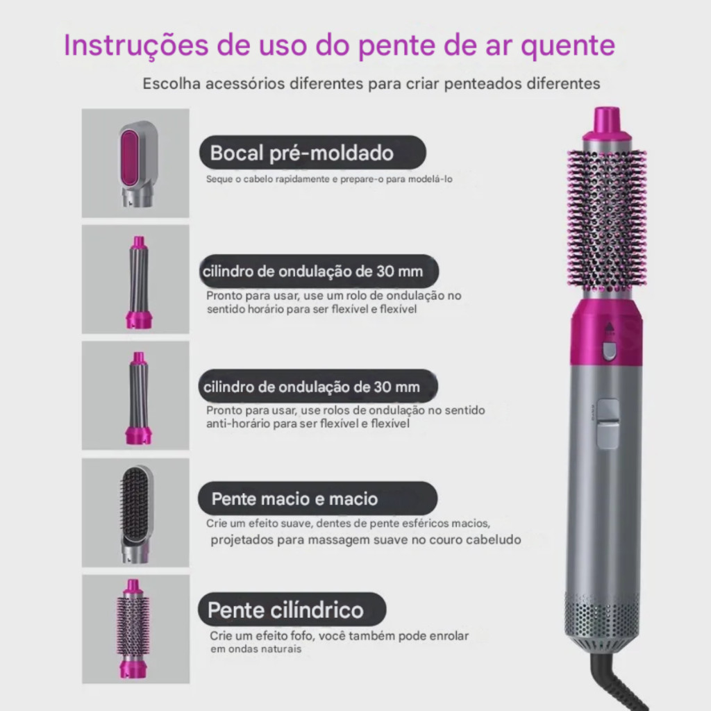 Kit 5 em 1 Secador Escova Alisadora e Modeladora Profissional Cabelos Lisos Brilhantes e Volume