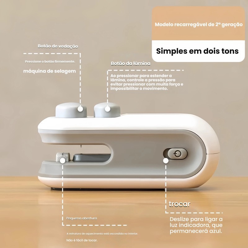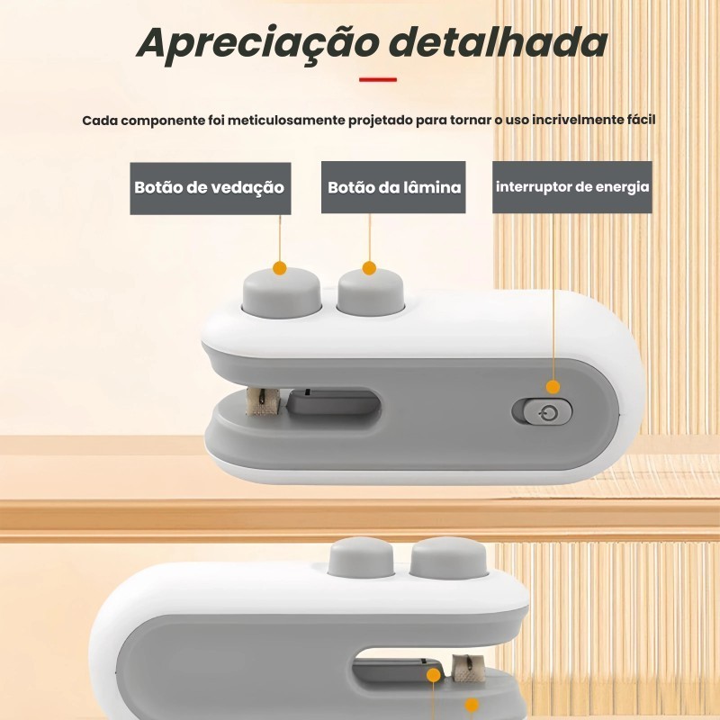 Mini Seladora Portátil USB 2 em 1: Sela e Corta Sacos Plásticos em Segundos | Embalagens Perfeitas