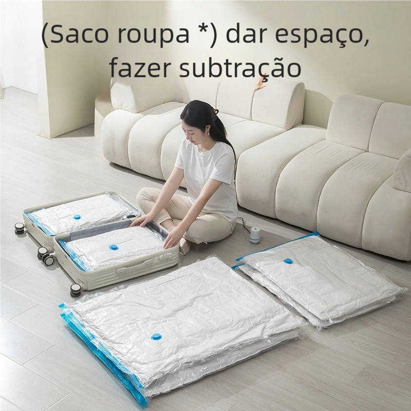 Saco a Vácuo + Bomba – Ideal para Mala Viagem, Roupas, Edredom e Guardar!