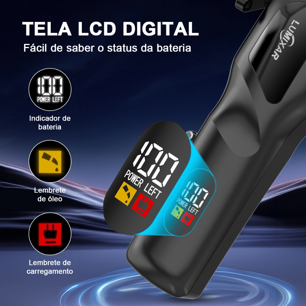Kit Máquina De Cortar Cabelo Profissional ,Kit Completo c/ 8 Pentes,Tela LED e Base Magnética para Barba e Corte