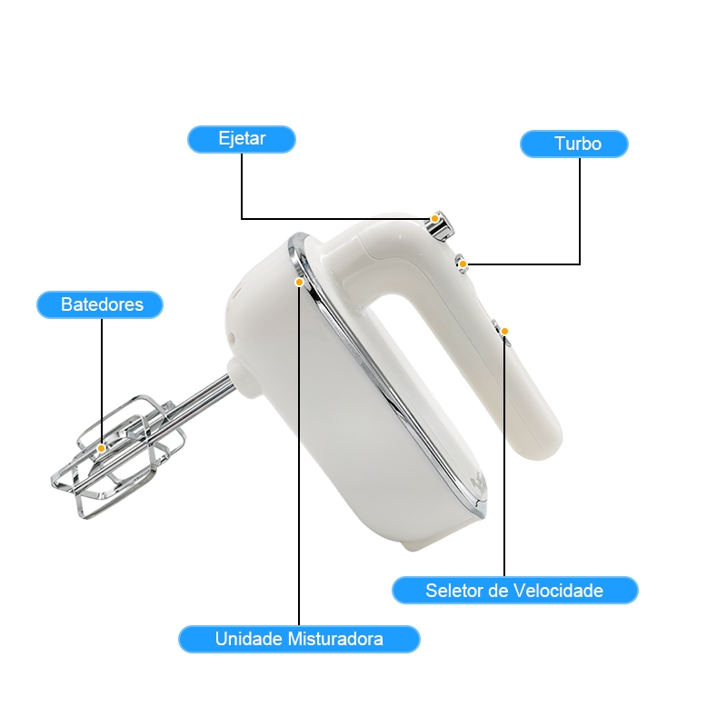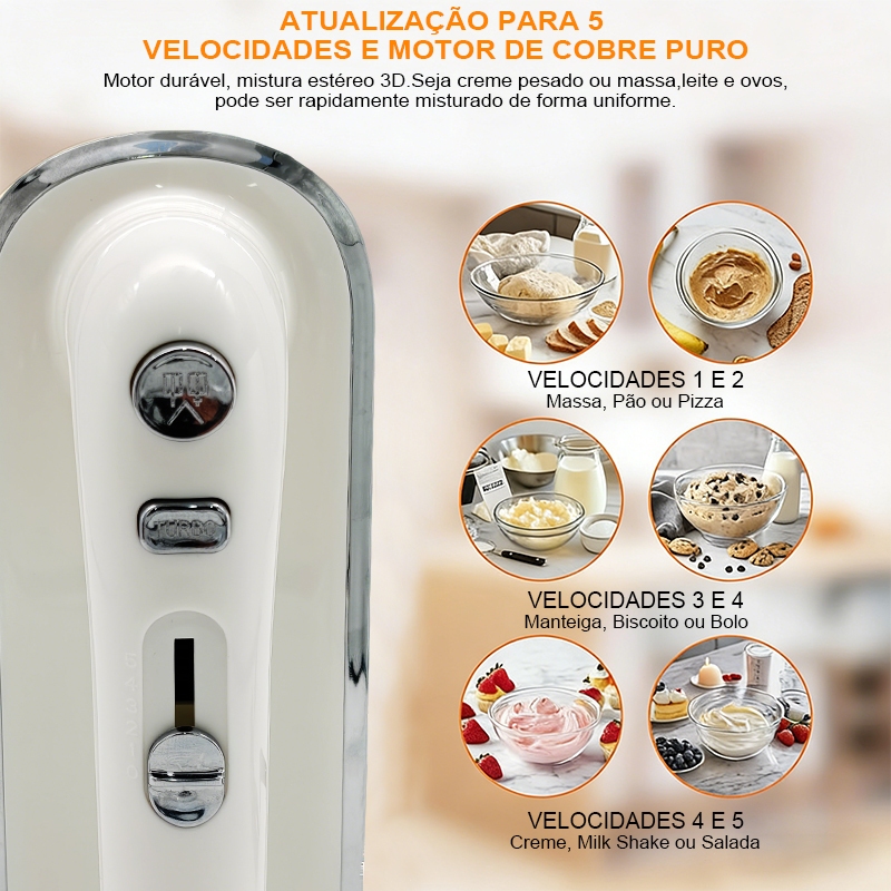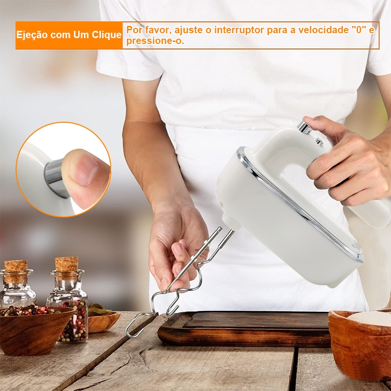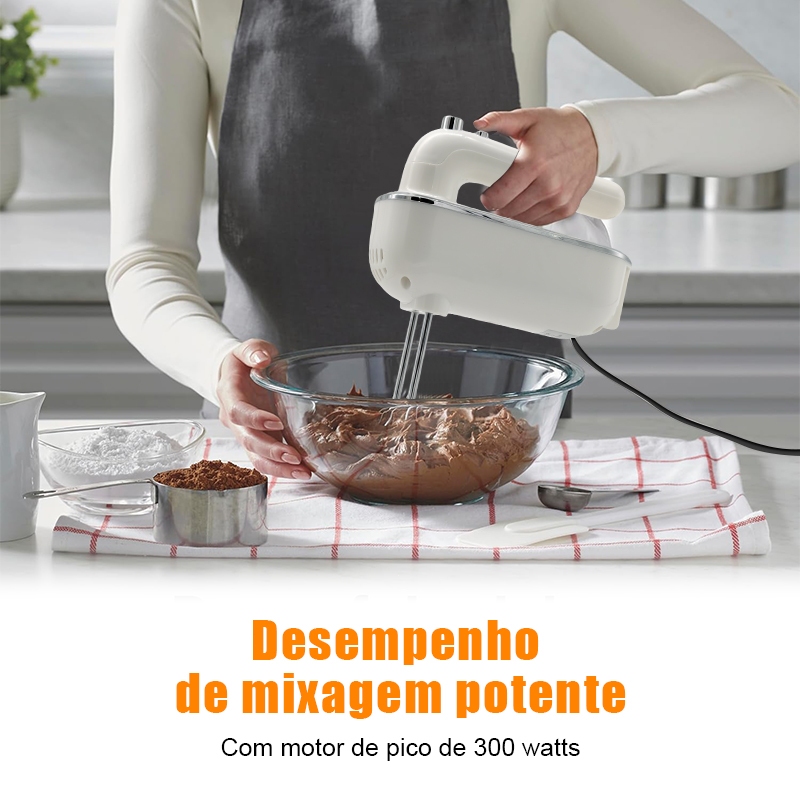 Batedeira de Mão Elétrica Profissional 300W Portátil 5 Velocidades com Função Turbo para Bolo Massas Doces e Claras em N
