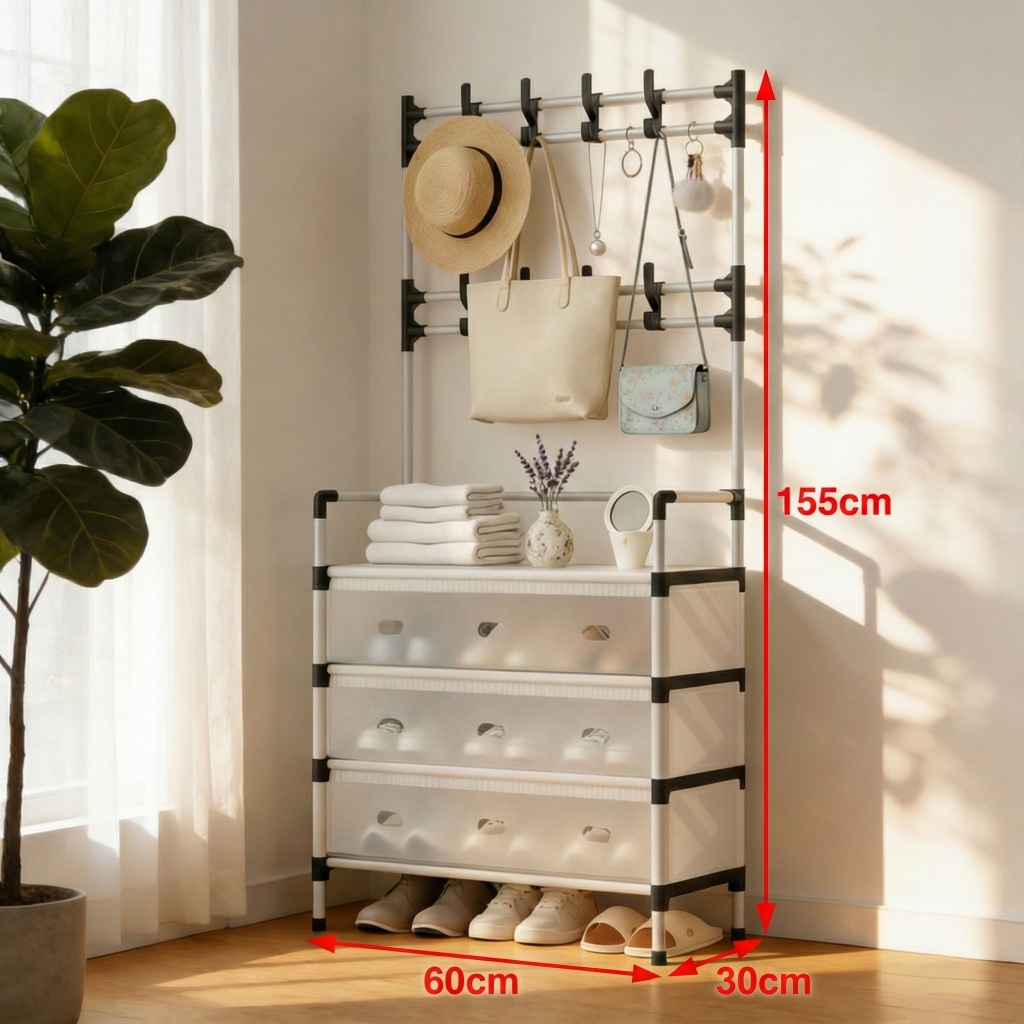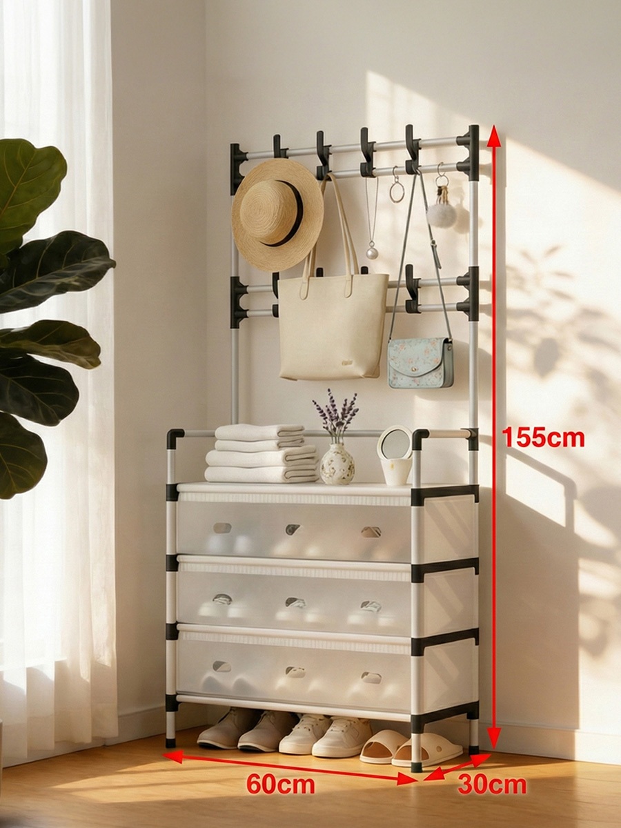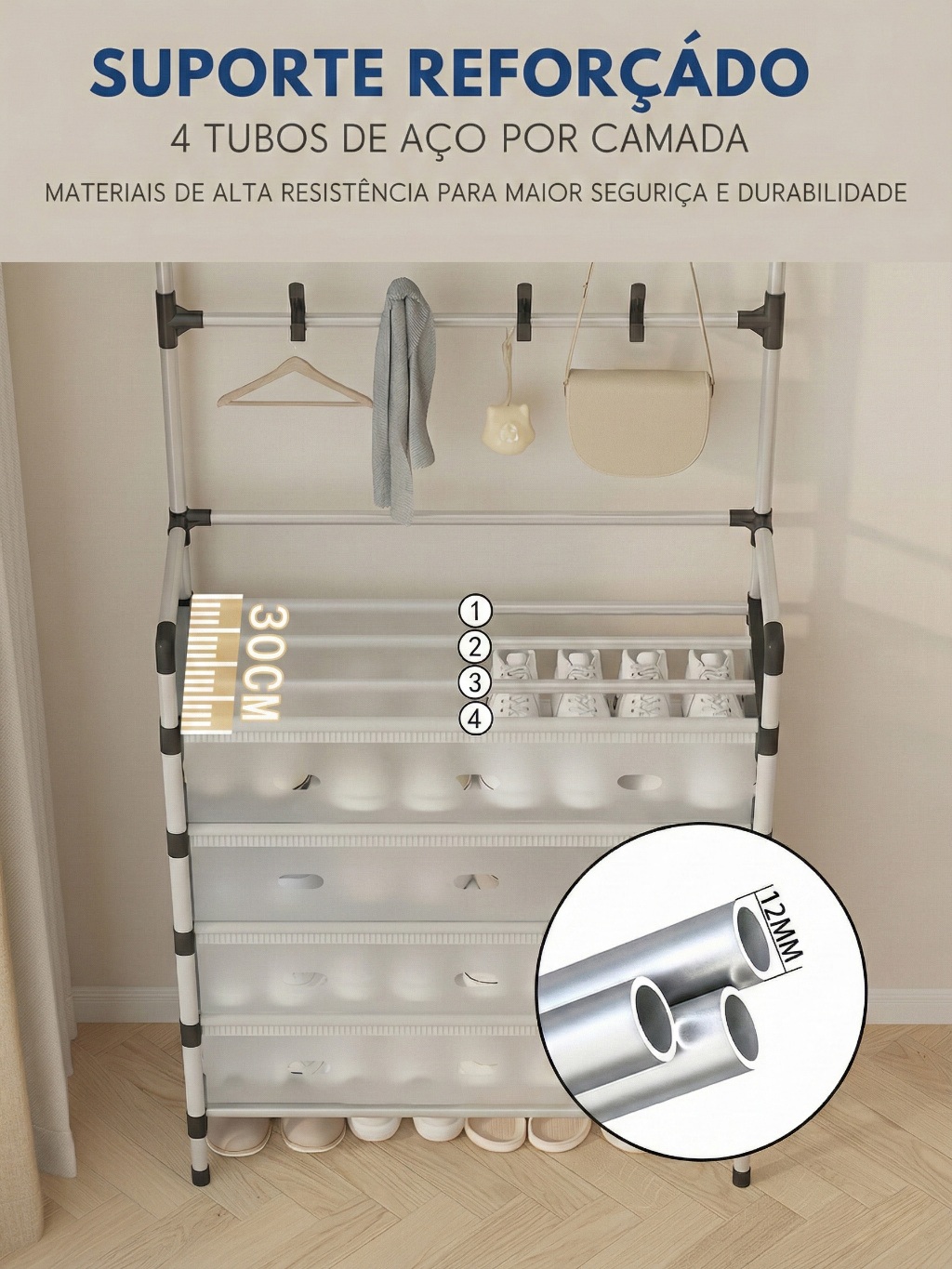 Sapateira Vertical Multiuso 4 Camadas com Cabideiro para 9 Pares de Sapatos
