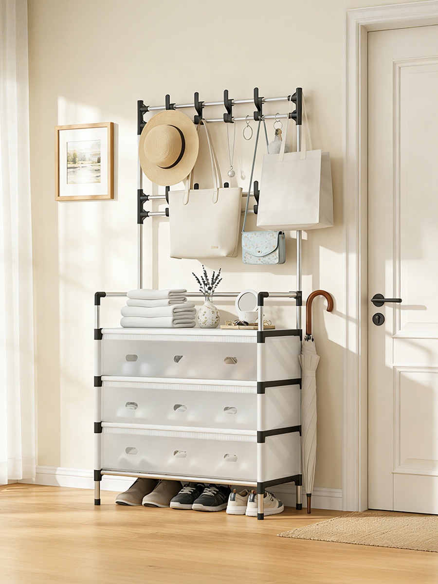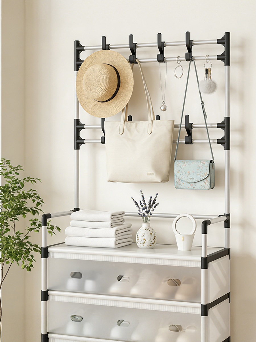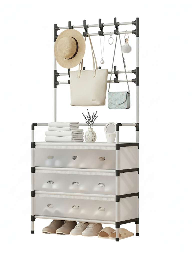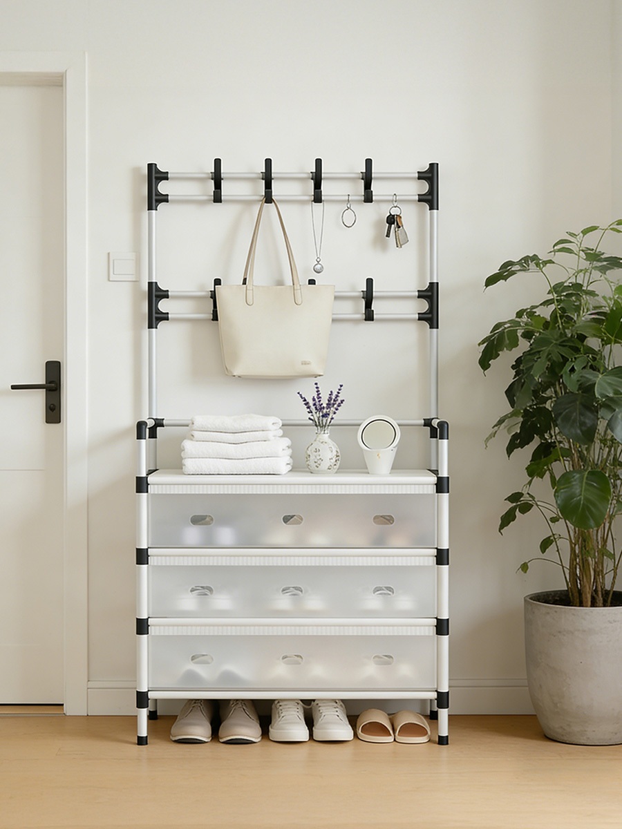 Sapateira Vertical Multiuso 4 Camadas com Cabideiro para 9 Pares de Sapatos