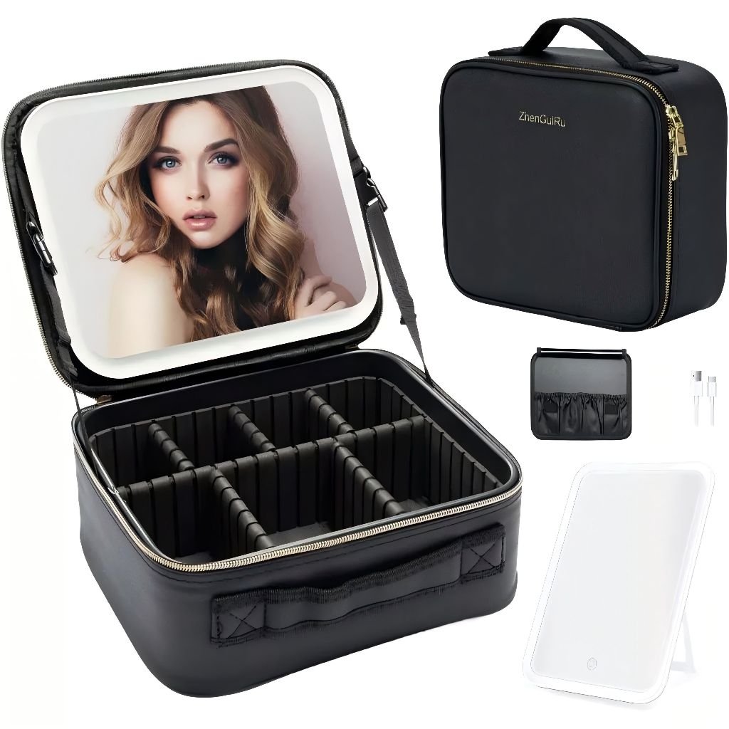 Kit Maleta Maquiagem completo Profissional Com Espelho e Luz Led e paleta de maquiagem