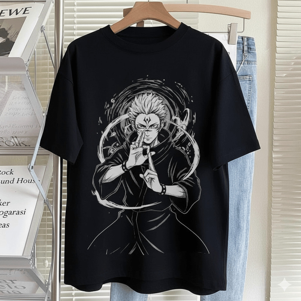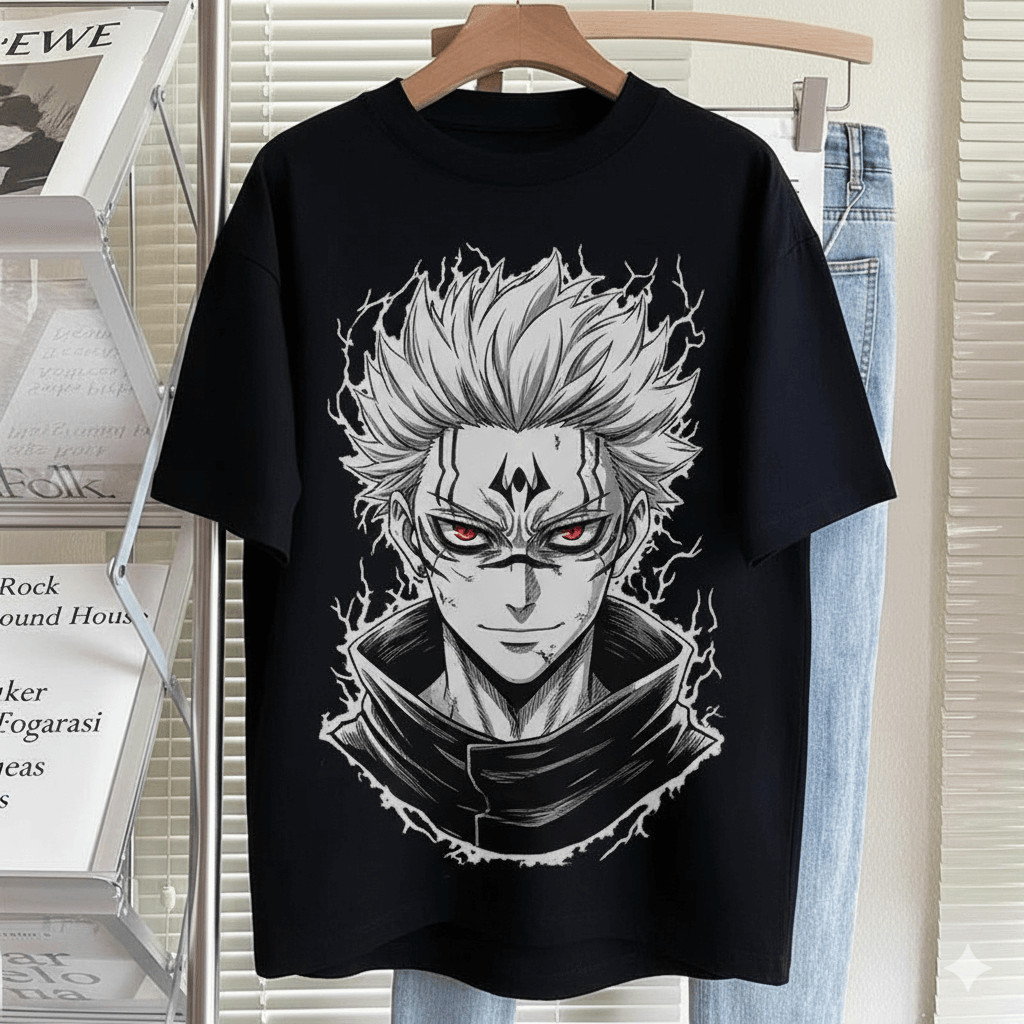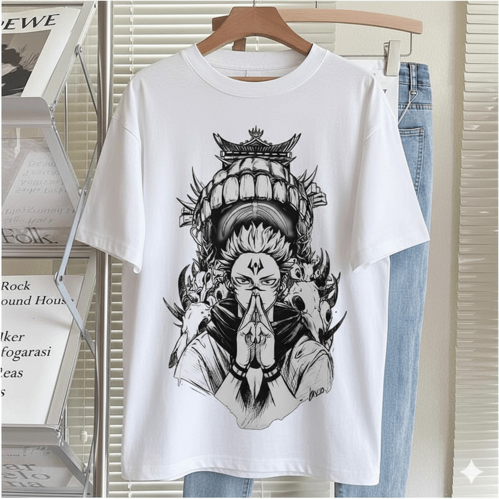 Camiseta Unissex Jujutsu Kaisen Sukuna Ilustração Dark Estilo Urbano Moderna Estilosa Poderosa Moda Casual