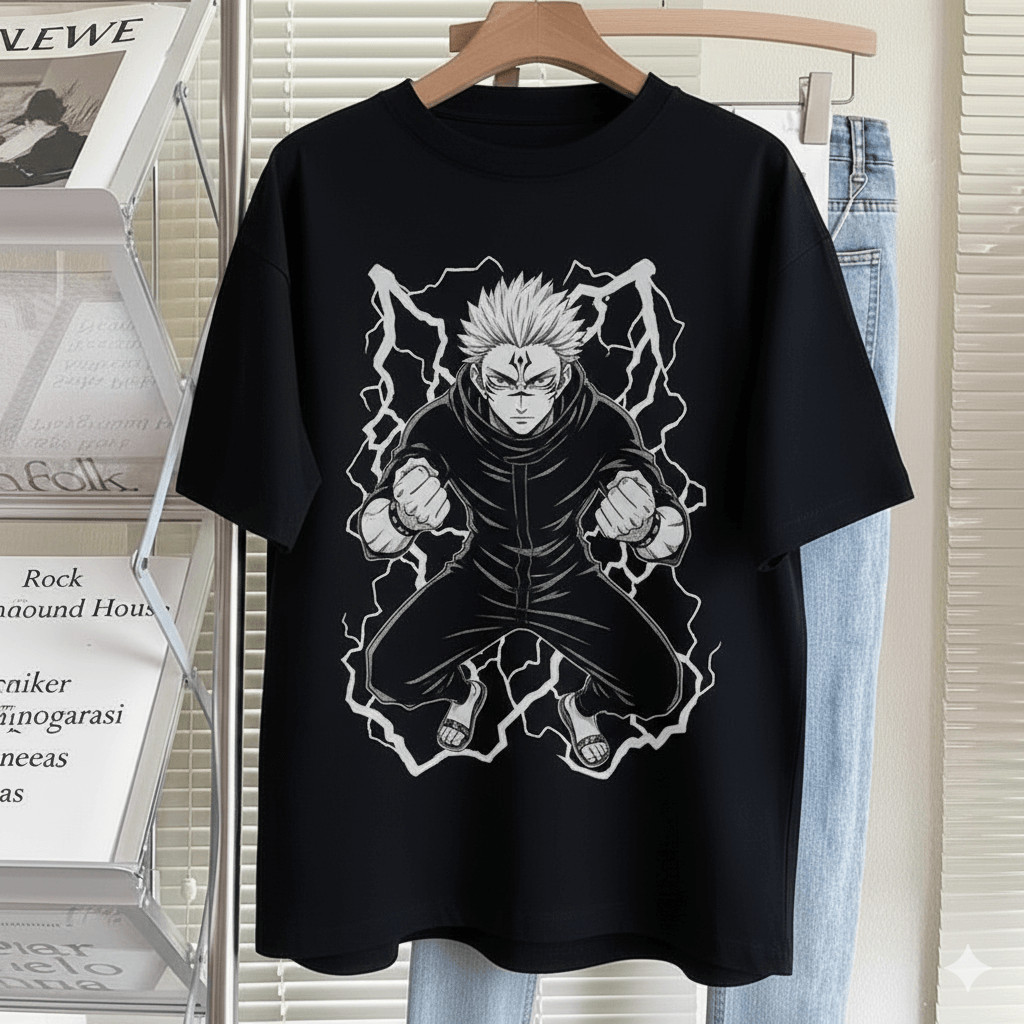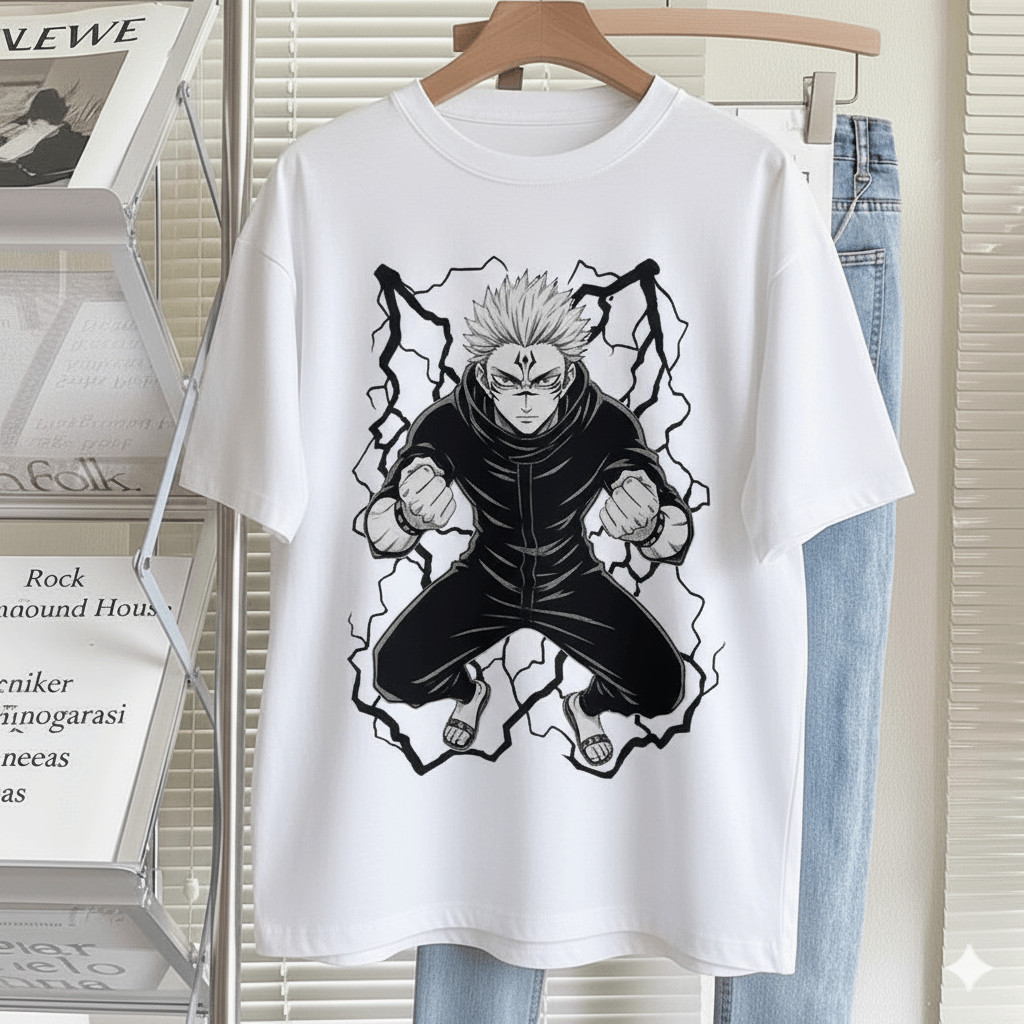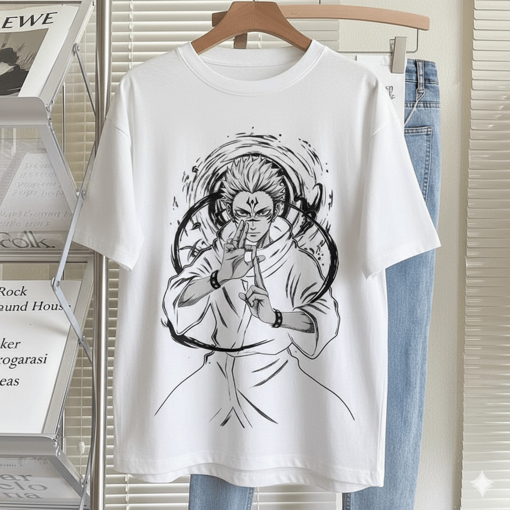 Camiseta Unissex Jujutsu Kaisen Sukuna Ilustração Dark Estilo Urbano Moderna Estilosa Poderosa Moda Casual
