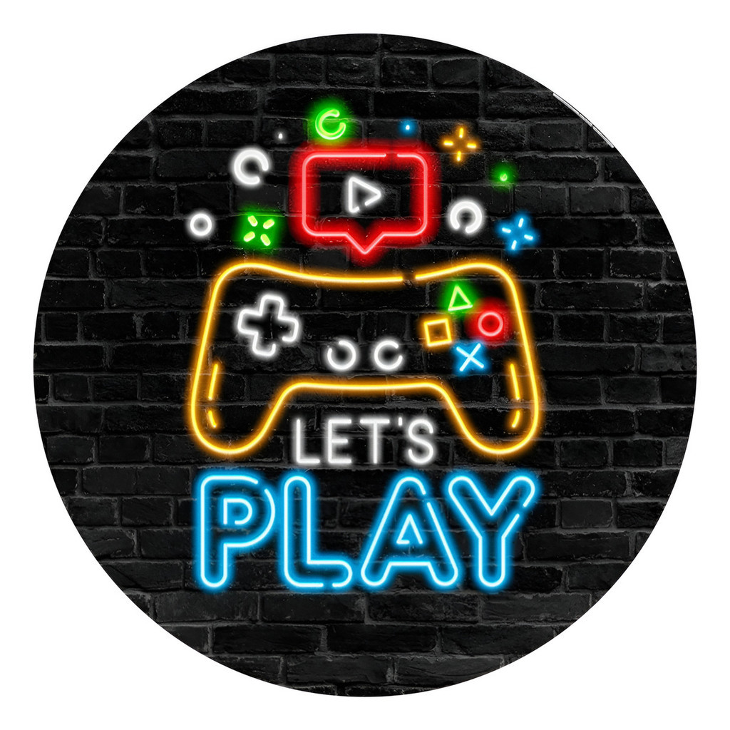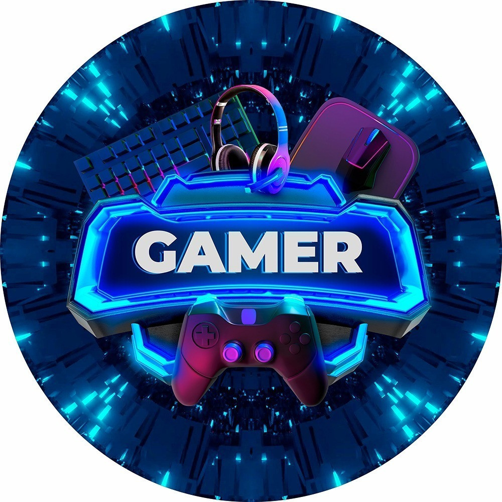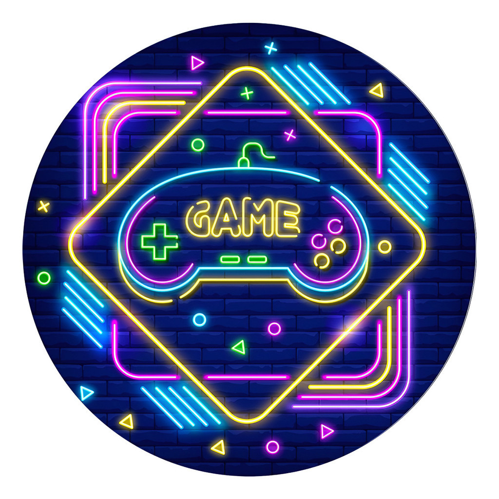Capa Redonda Sublimada Para Painel De Festa Infantil Tema Game Gamer Jogo Play Meninos Aniversario 50x50cm