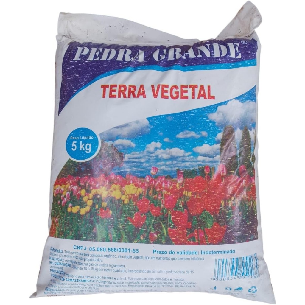 5 Kg Terra Vegetal Orgânica para Jardins, Quintais e Gramados – Ideal para Grandes Espaços