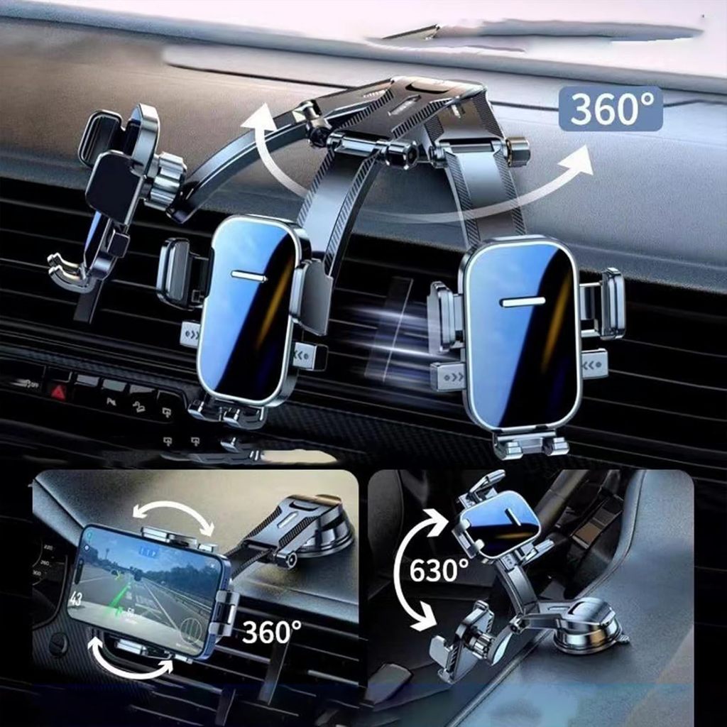 Suporte de Telefone para Carro - Braço Longo, Ventosa Forte, Rotação 360°, Antichoque