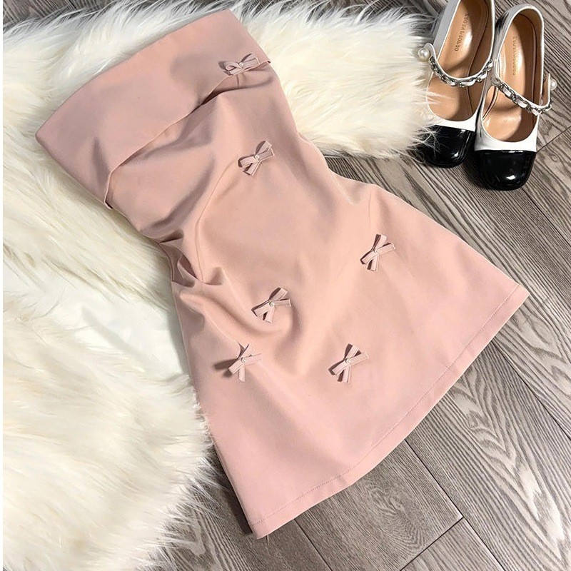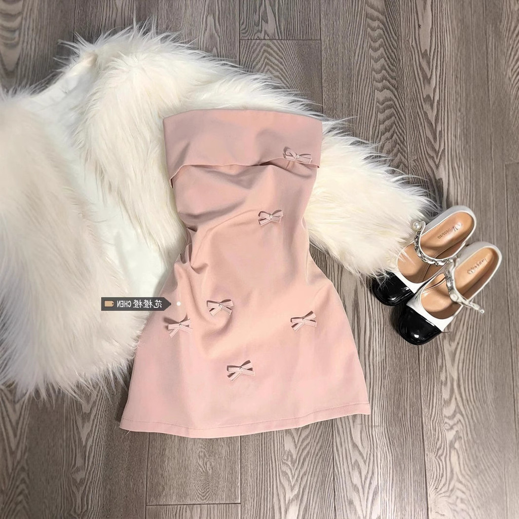 Estilo coreano rosa tridimensional Bowknot tubo vestido superior feminino primavera verão puro desejo estilo quente meni