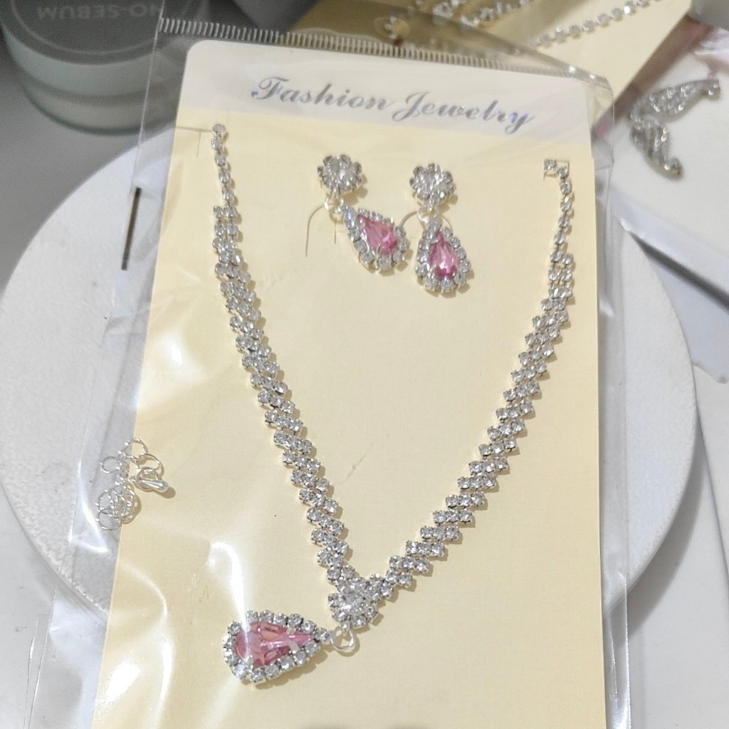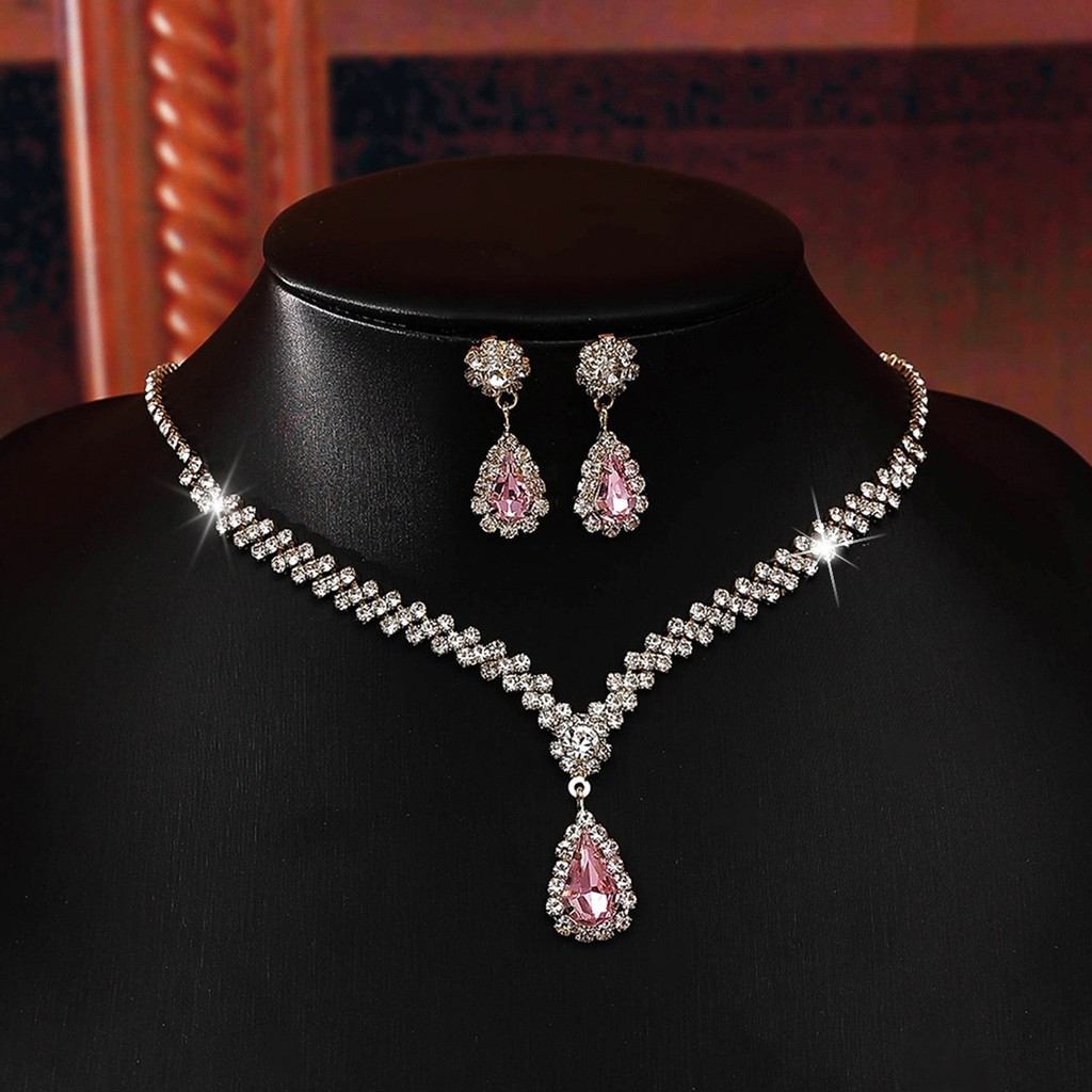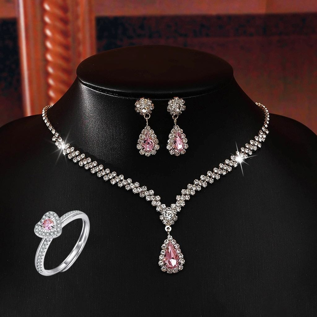 Conjunto de colar, anel e brincos de diamantes de luxo feminino, conjunto de joias finas, para casamentos e presentes