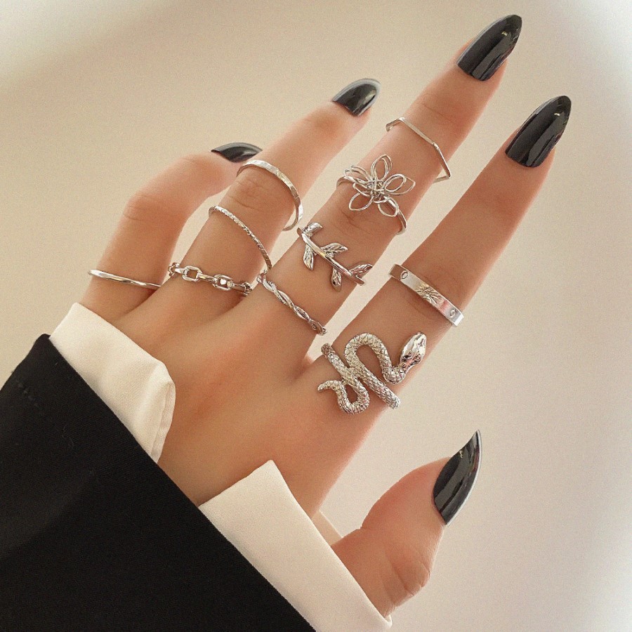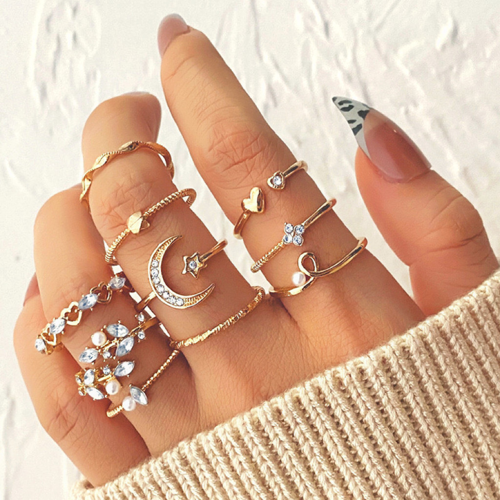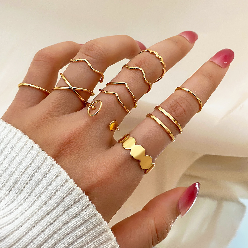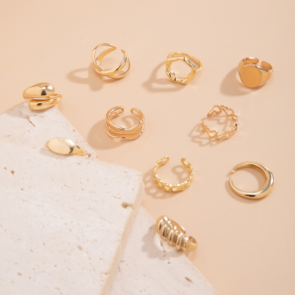 Conjunto de joias de ouro exagerado, anéis empilháveis elegantes e modernos, adequados para casamentos e presentes