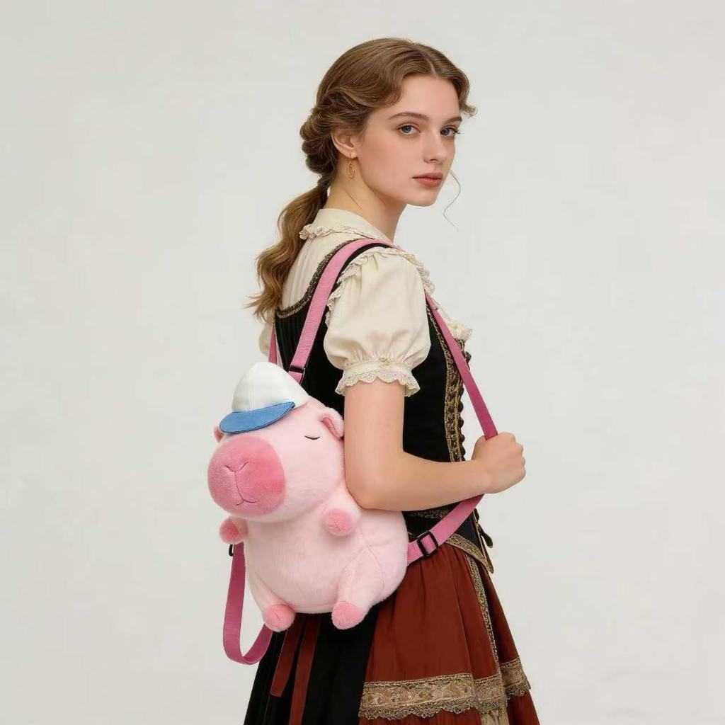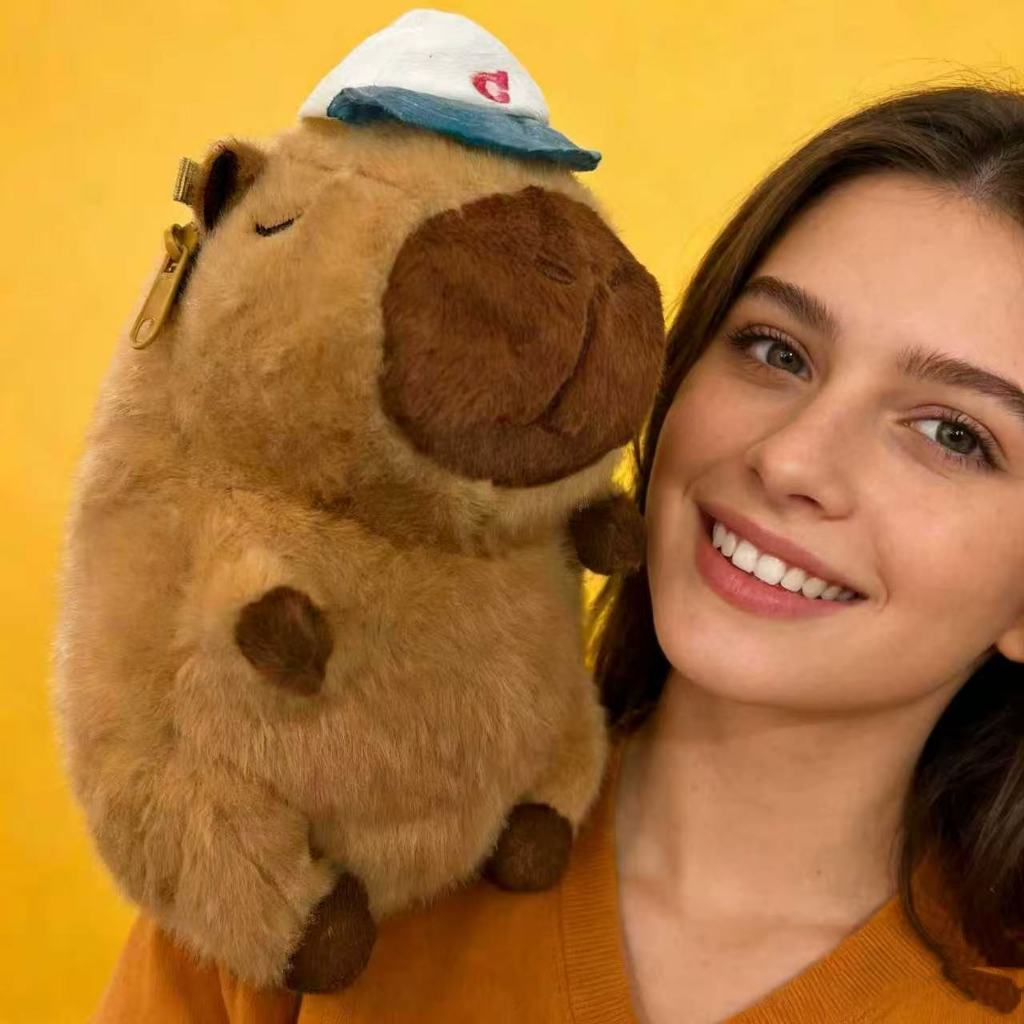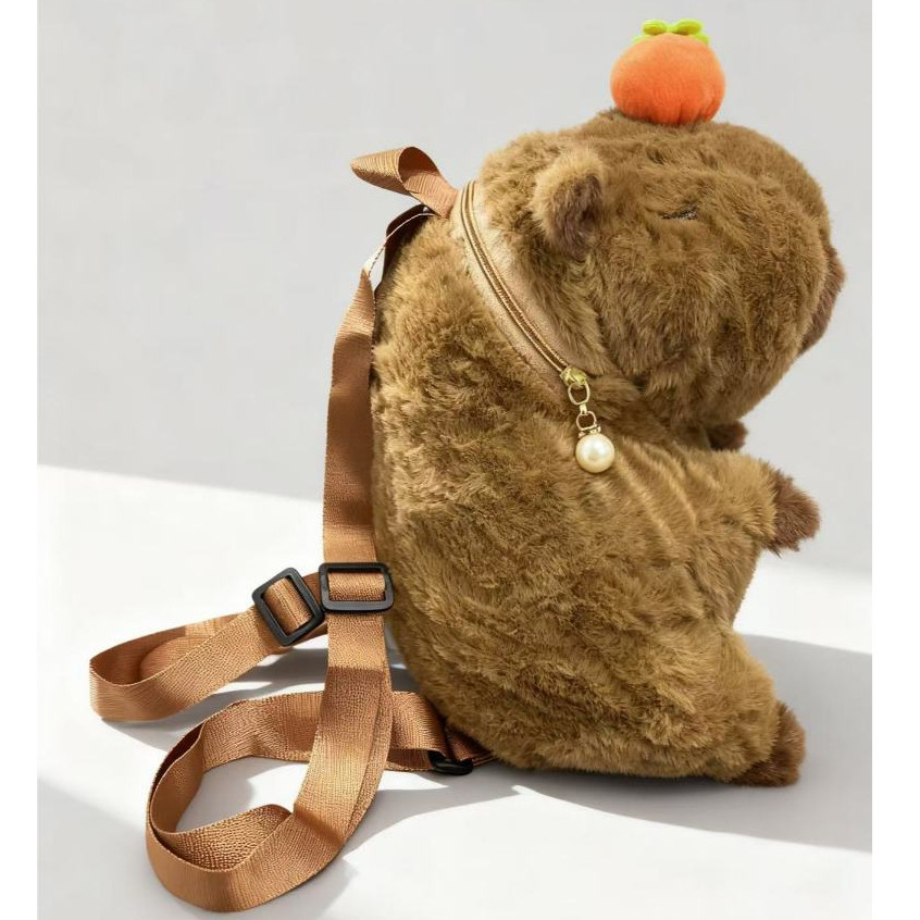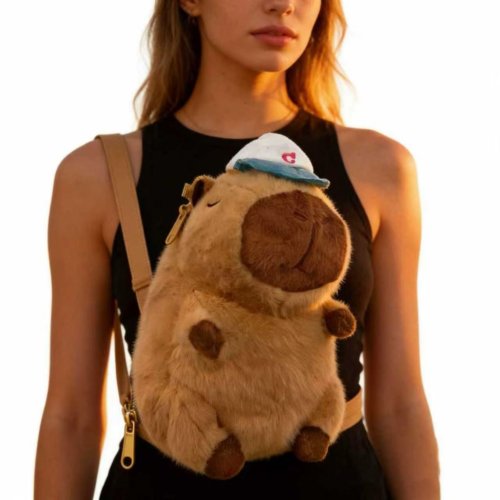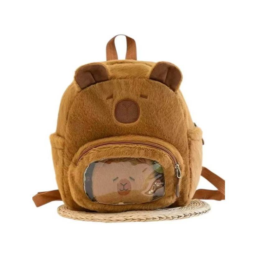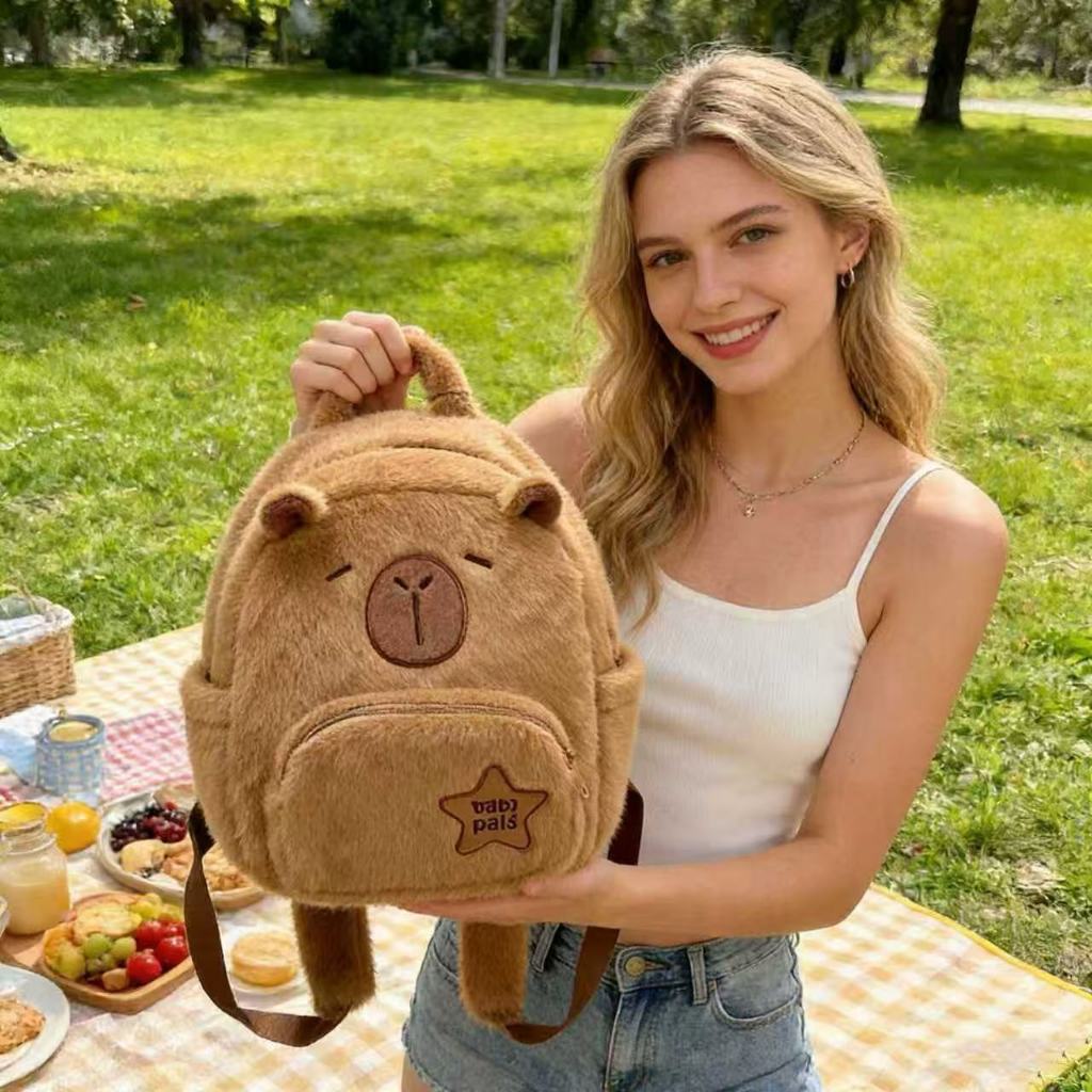 Mochila Infantil Feminina em Pelúcia Capivara Fofa e Aconchegante-Capivara fofa