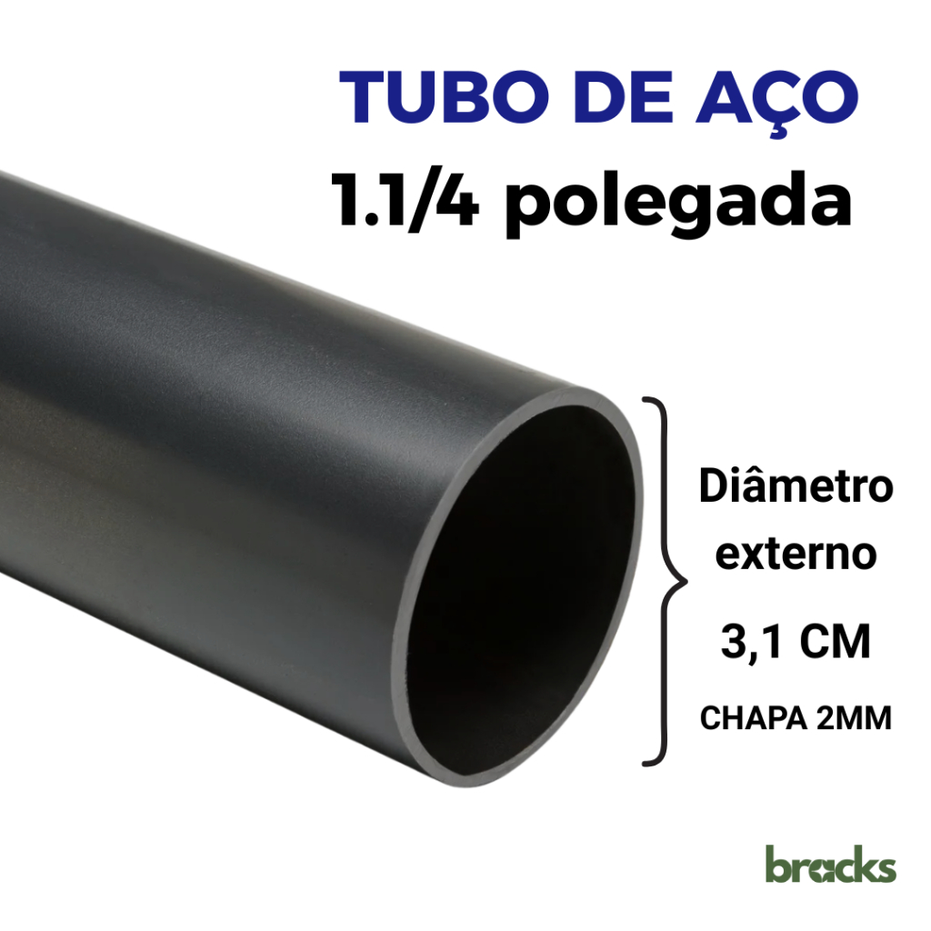 Tubo Redondo de Aço Espessura 2mm - 1P / 1.1/4P / 1.1/2P Tubo Preto