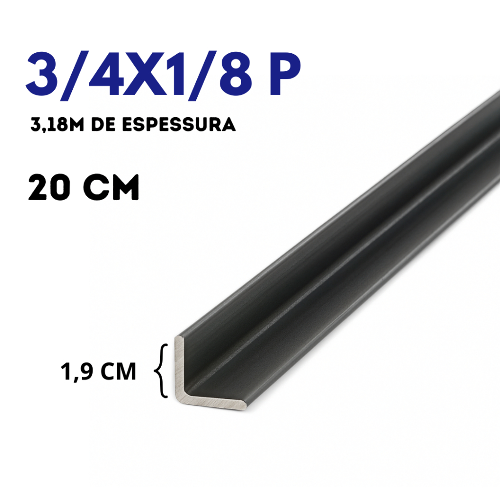 Cantoneira de Ferro 3/4 x 1/8P (1,9CM x 3,18MM) Escolha o Comprimento - Perfil L Abas Iguais