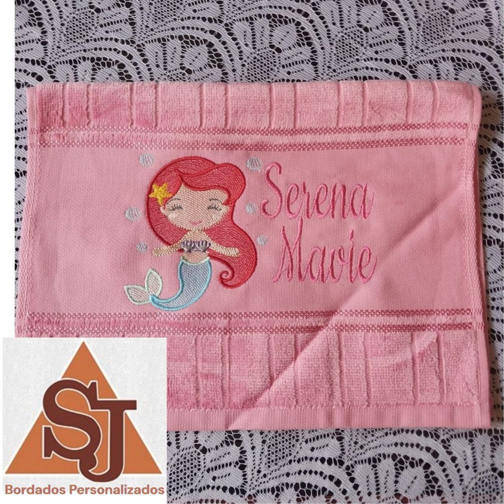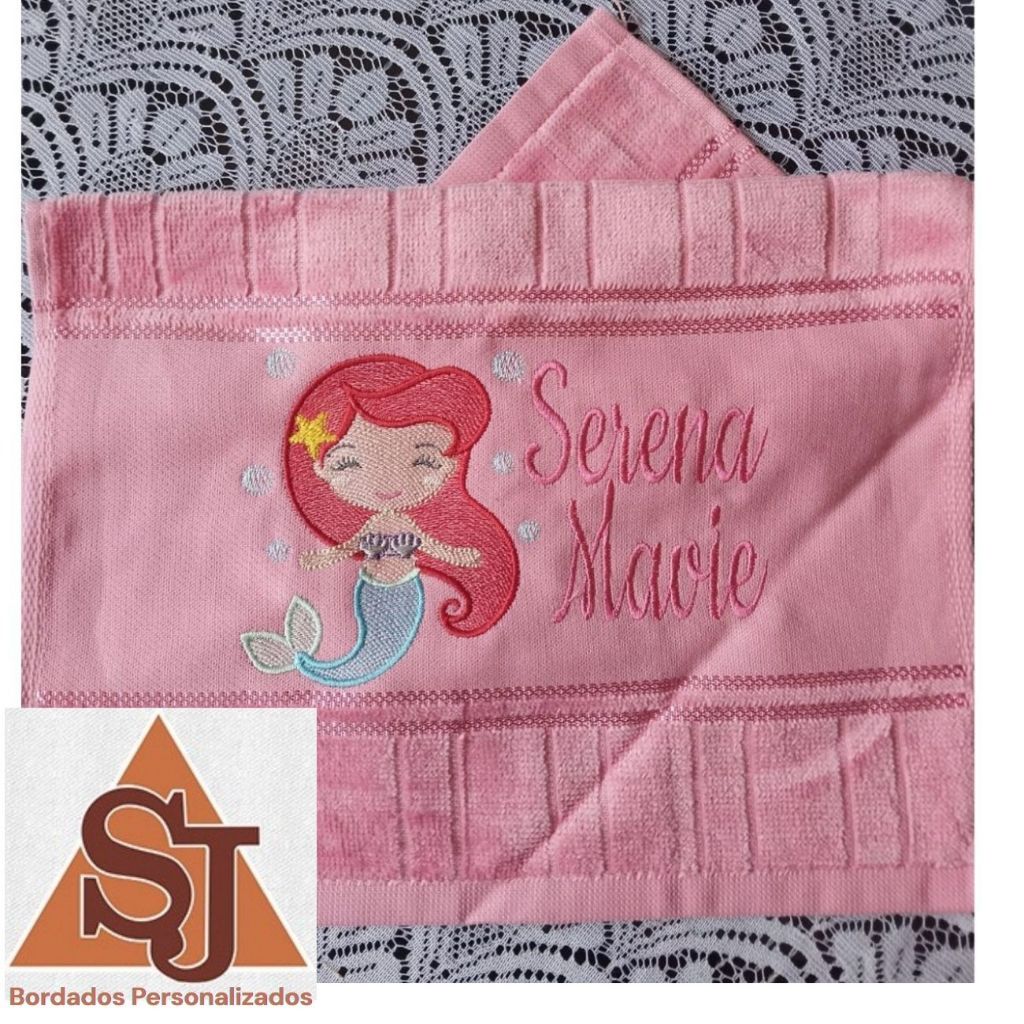 Toalha Mão Bordada Pequena Sereia e Personalizada com Nome