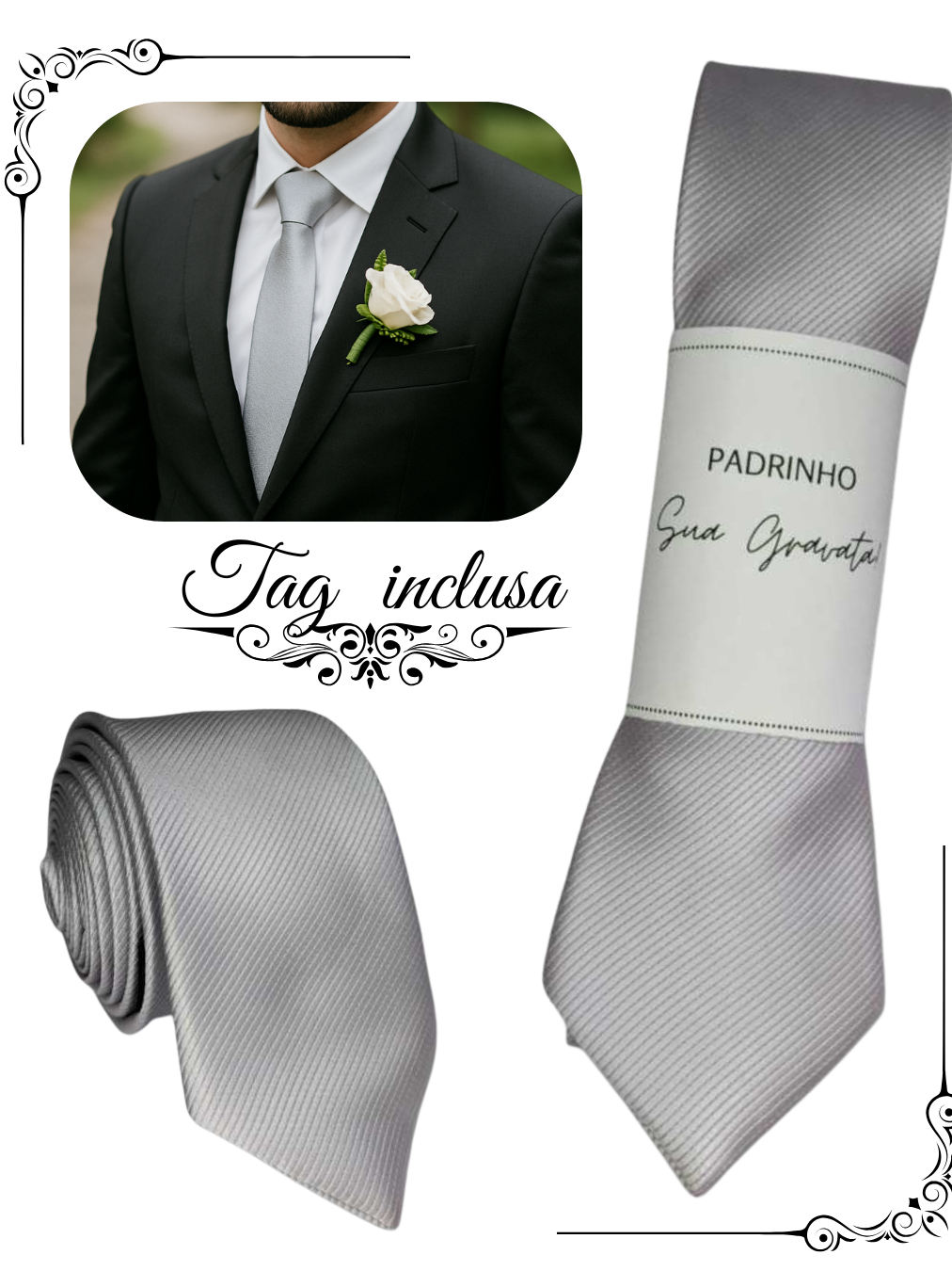 Kit 1 a 4 Gravatas prata para Padrinhos Casamento
