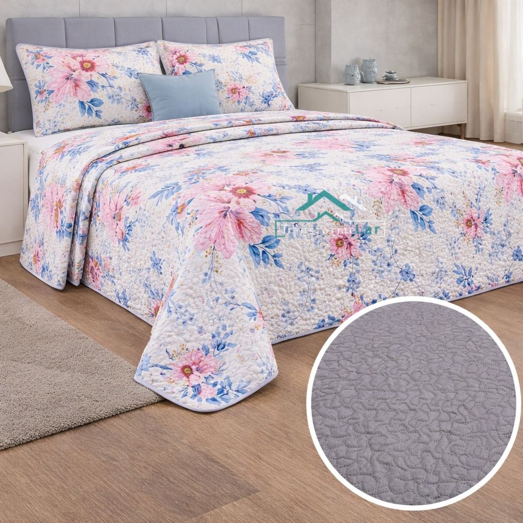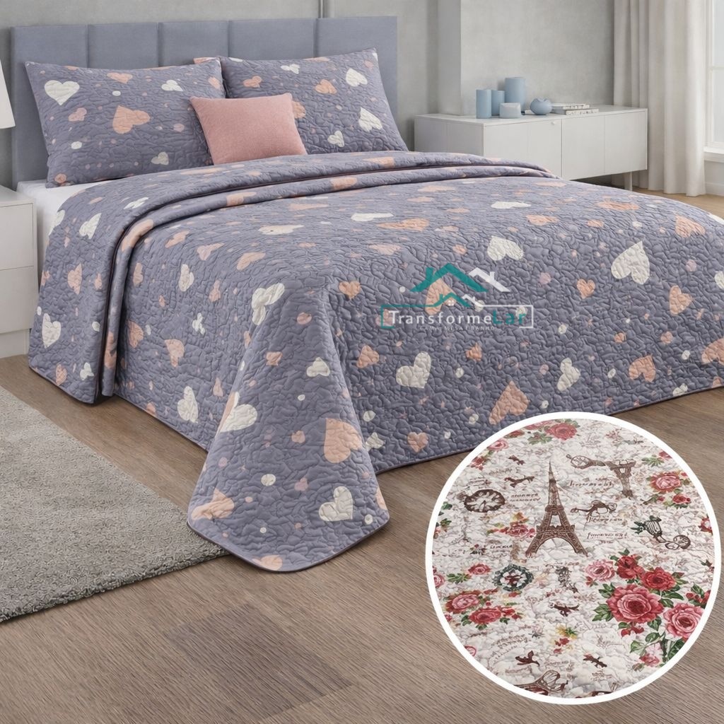 Kit Colcha Cobre Leito 3PÇS Dupla Face Queen Luxuoso 2,40X2,60M