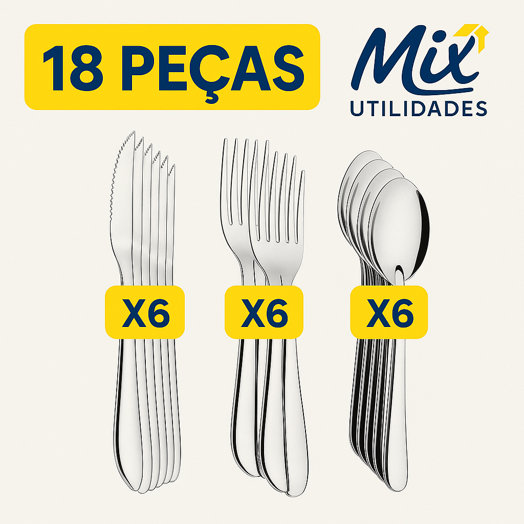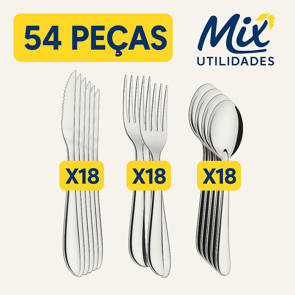 Kit 72 Talheres Aço Inox Acabamento Espelhado Reforçado para Cozinha e Buffet