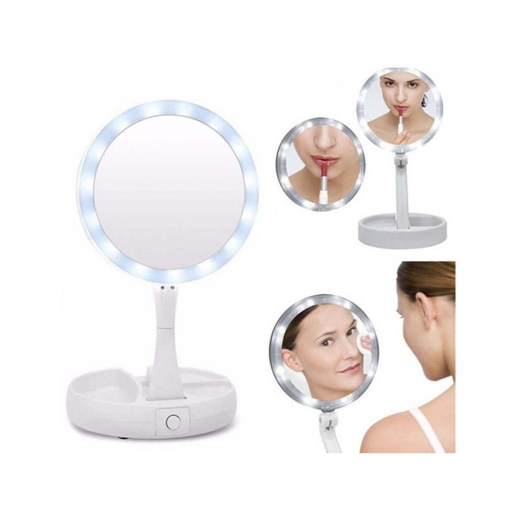 Espelho de Maquiagem 10x com Luz LED Dupla – Ajustável e Alimentado por USB
