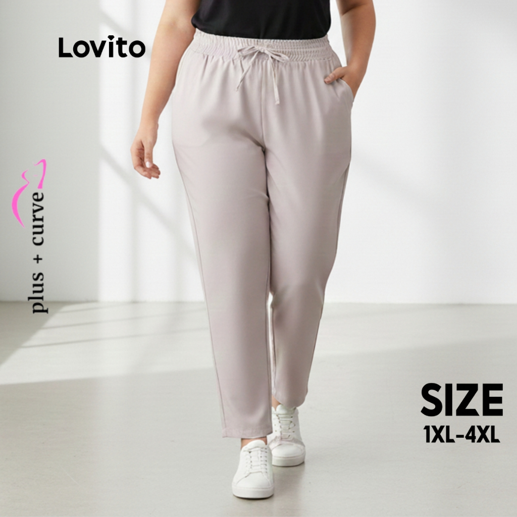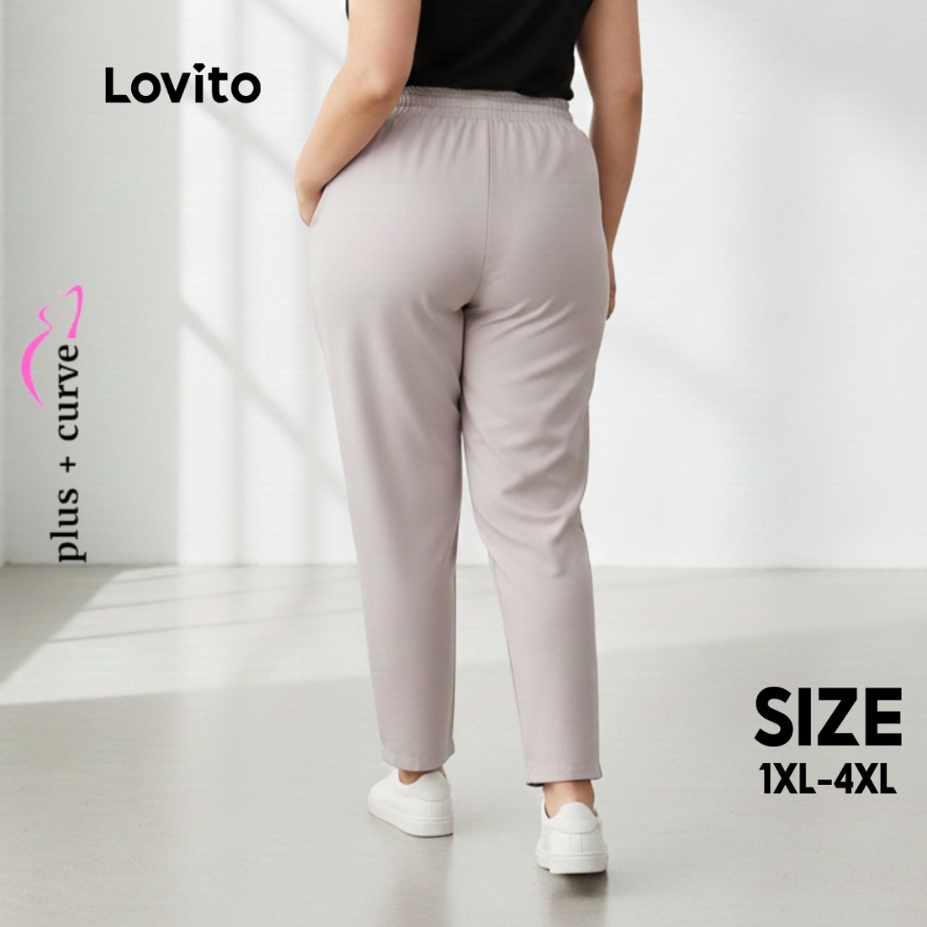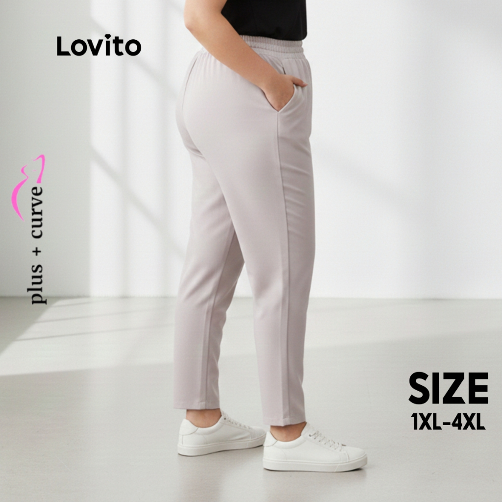 Lovito Calça Feminina Plus Size Slim Elástico Cintura PTB61BRL090