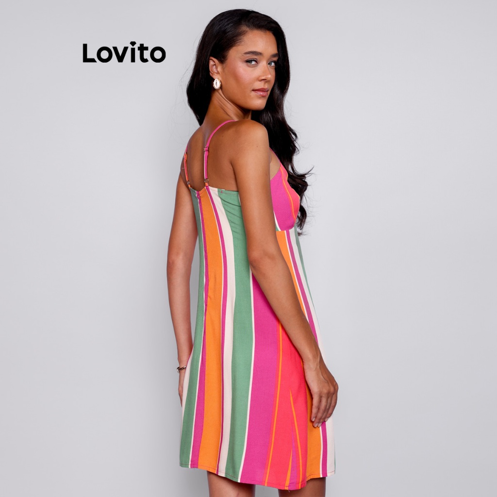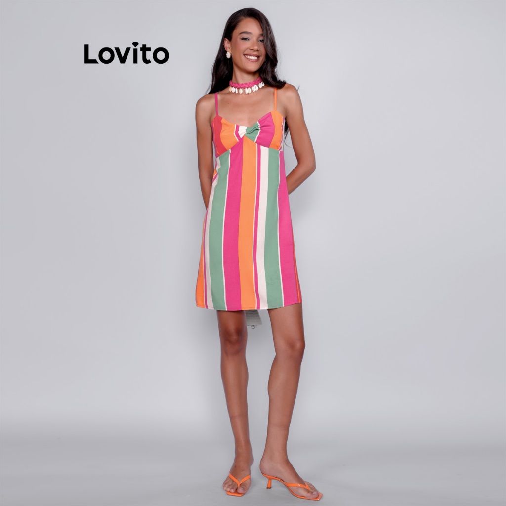 Lovito Bossa l Vestido Curto Feminino Sem Mangas Listrado Colorido BRDRB1216BRL1246