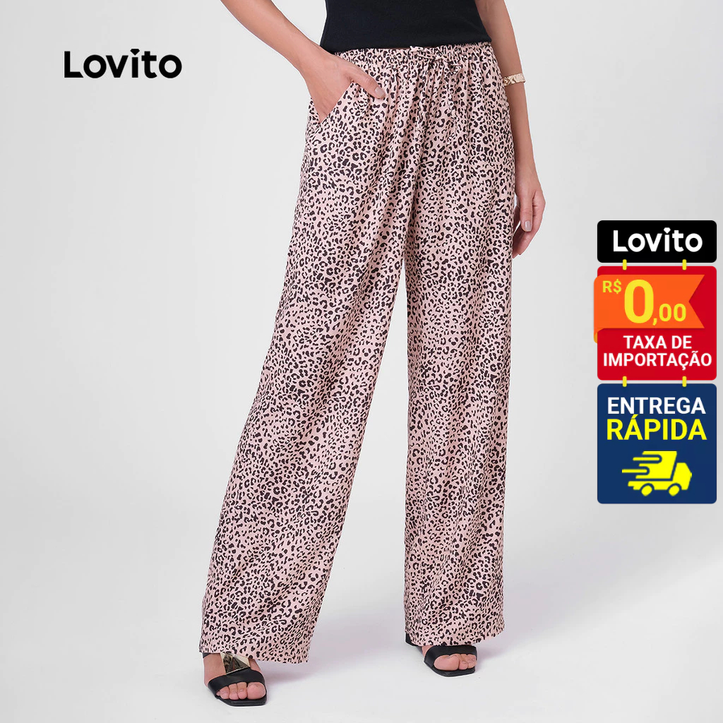 Lovito Calça Estilo Pijama Feminina Reta Elástico na Cintura Animal Print PTB313BRL342