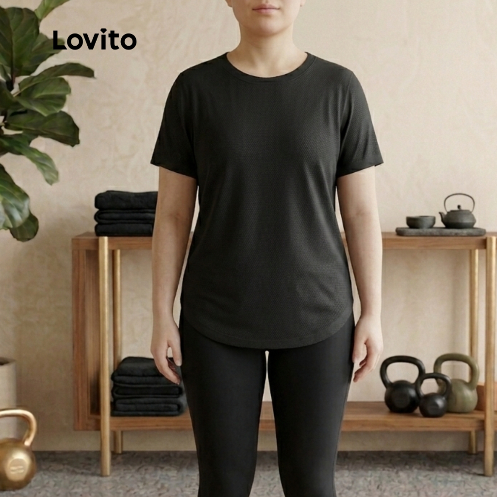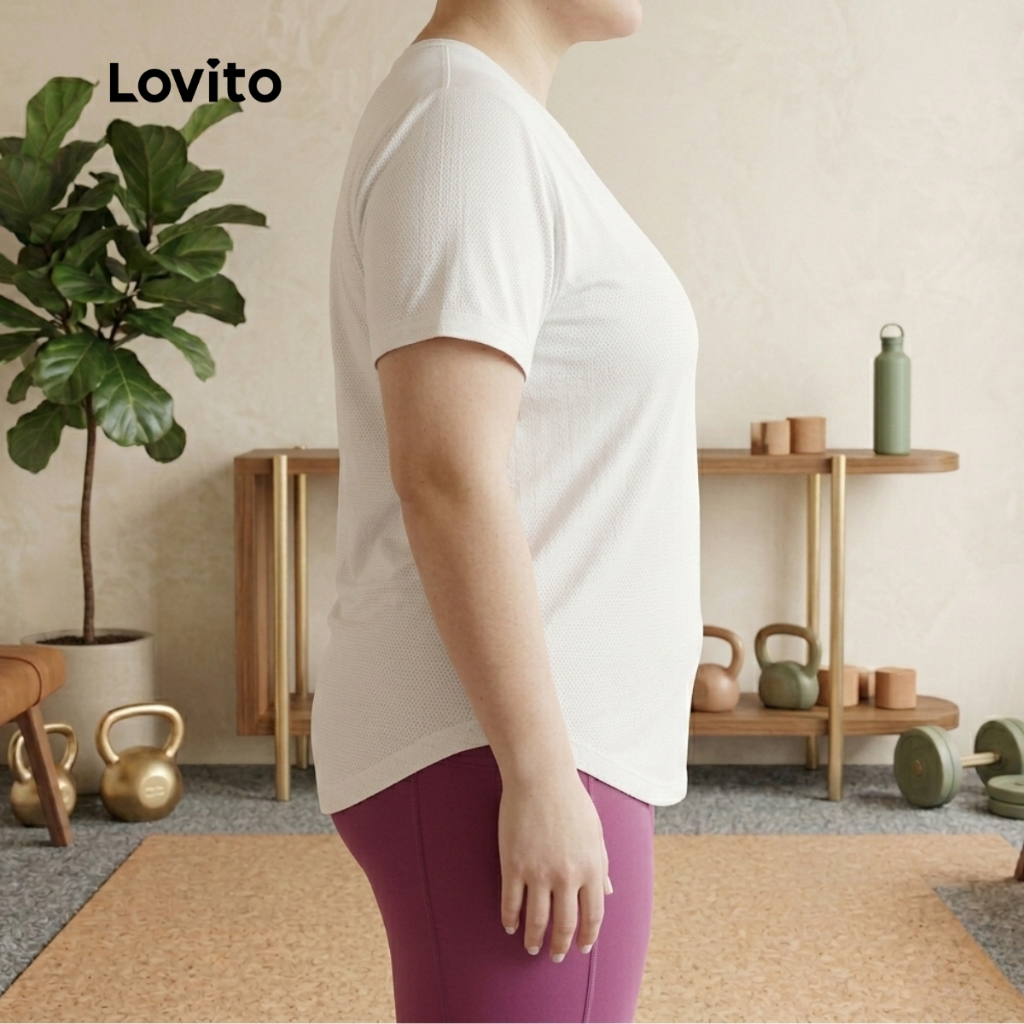 Lovito Camiseta Esportiva Moda Plus Size Com Mangas Feminina BRTSB1451BRL1481