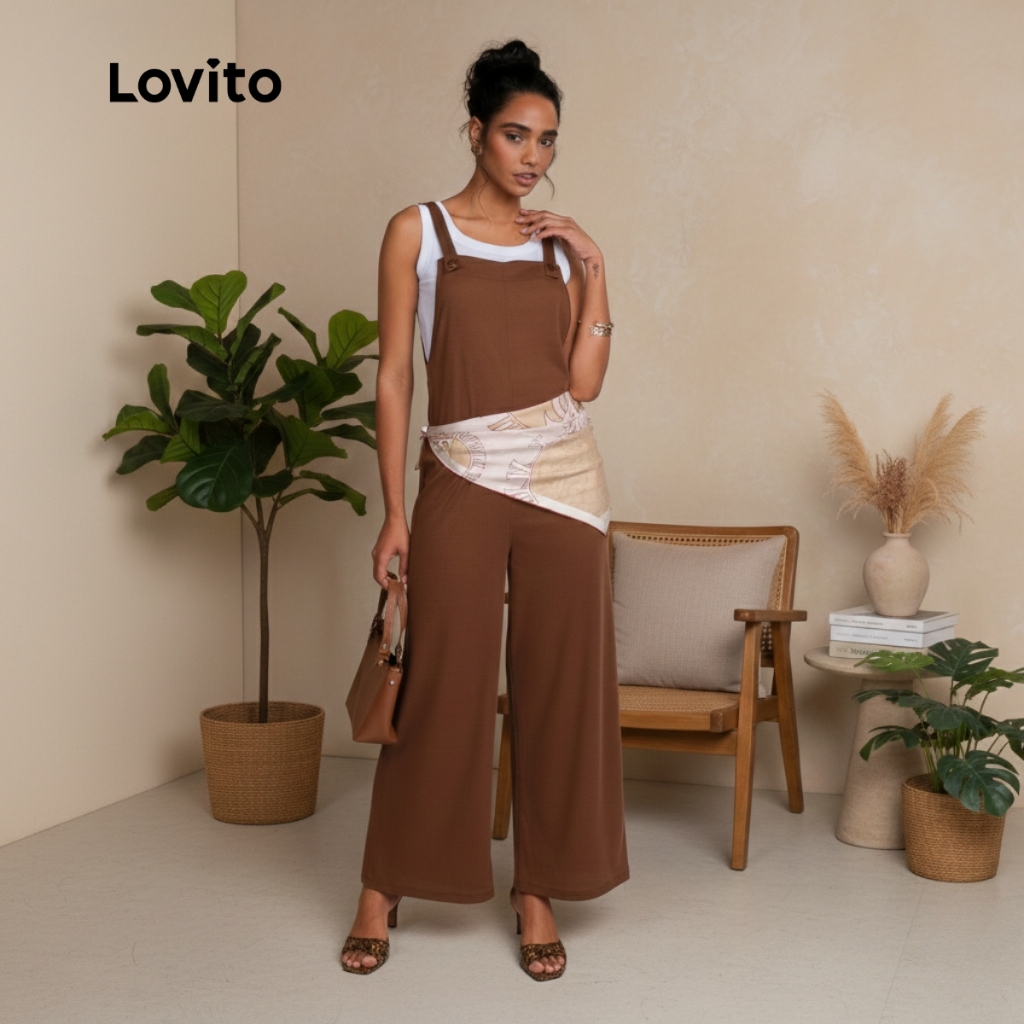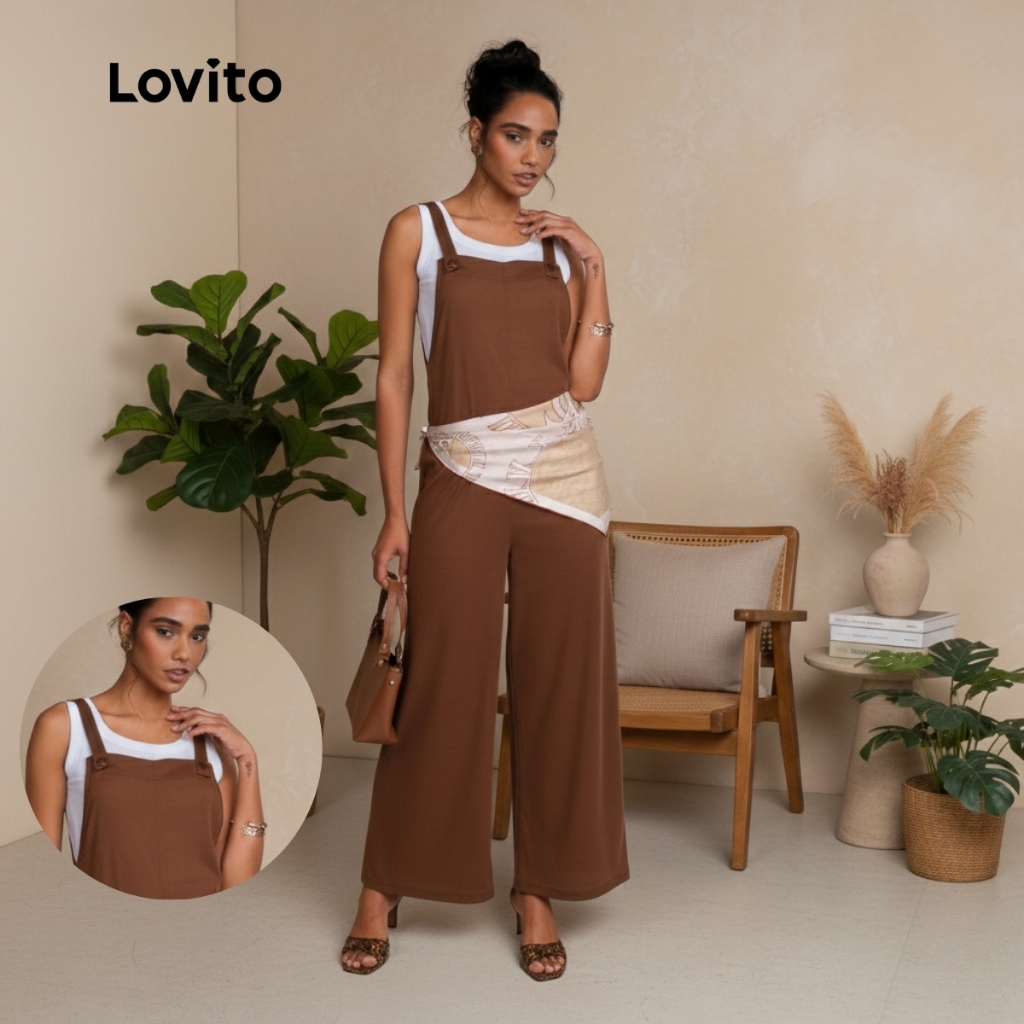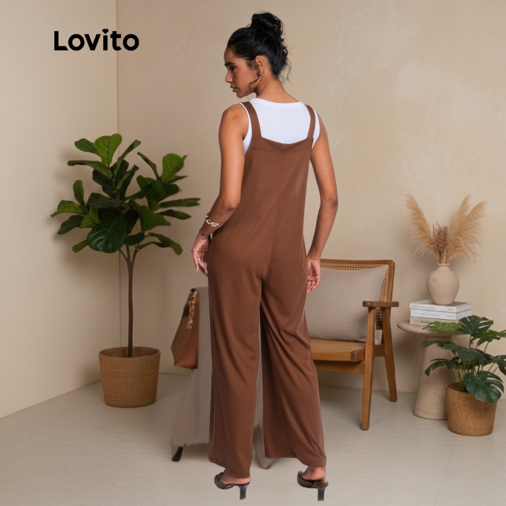 Lovito Macacão Sem Mangas Feminino Marrom Pantalona Casual Chic JRB1032BRL1062BR