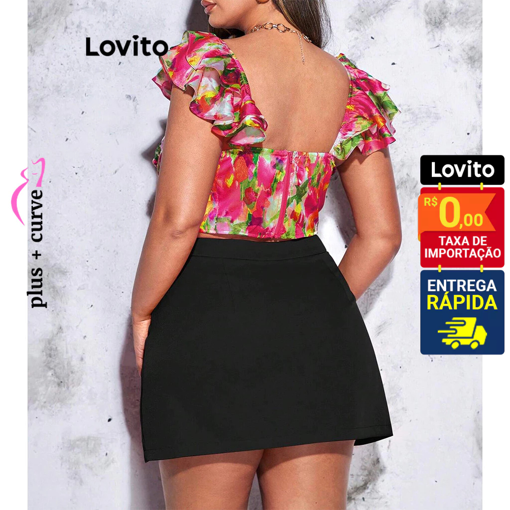 Lovito Saia Feminina Curta Cós Assimétrico SKB7BR117