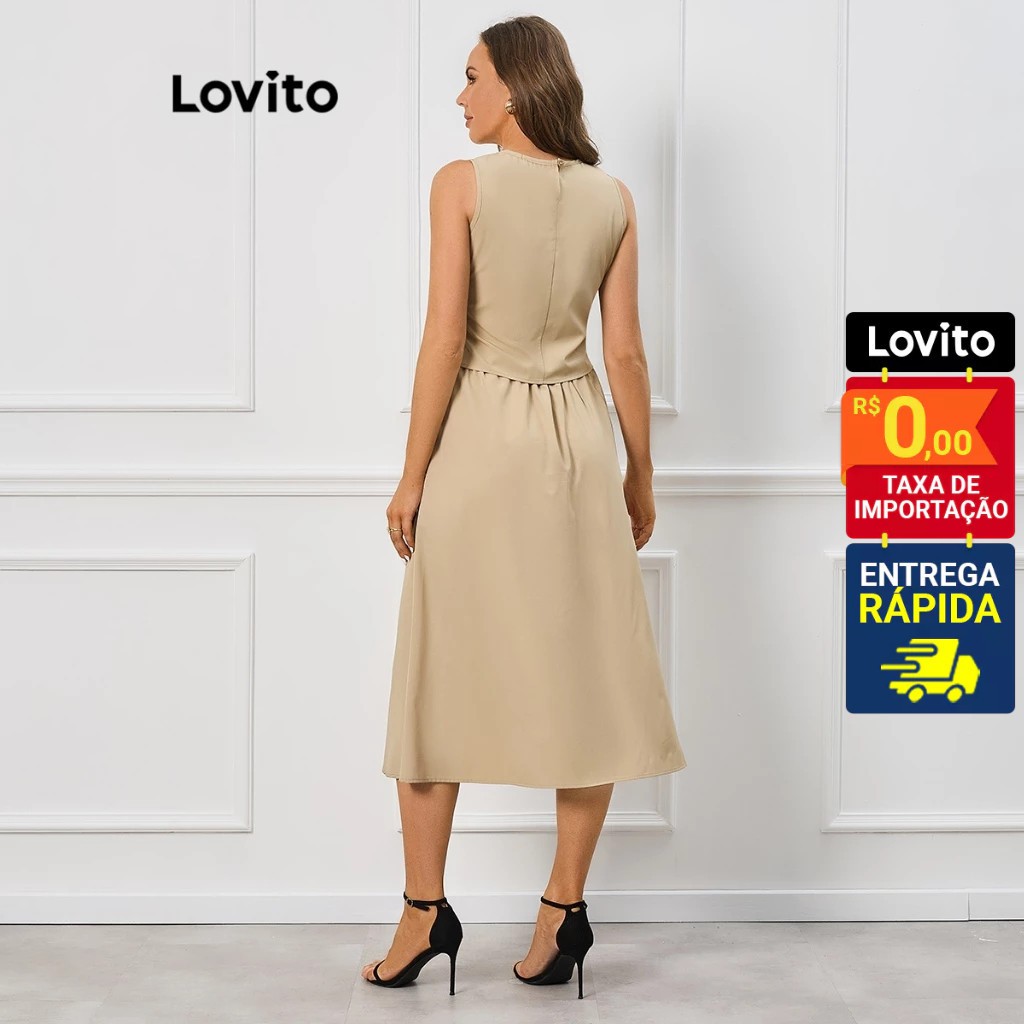 Lovito Conjunto Feminino Liso Regata e Saia Midi KSB9BR319