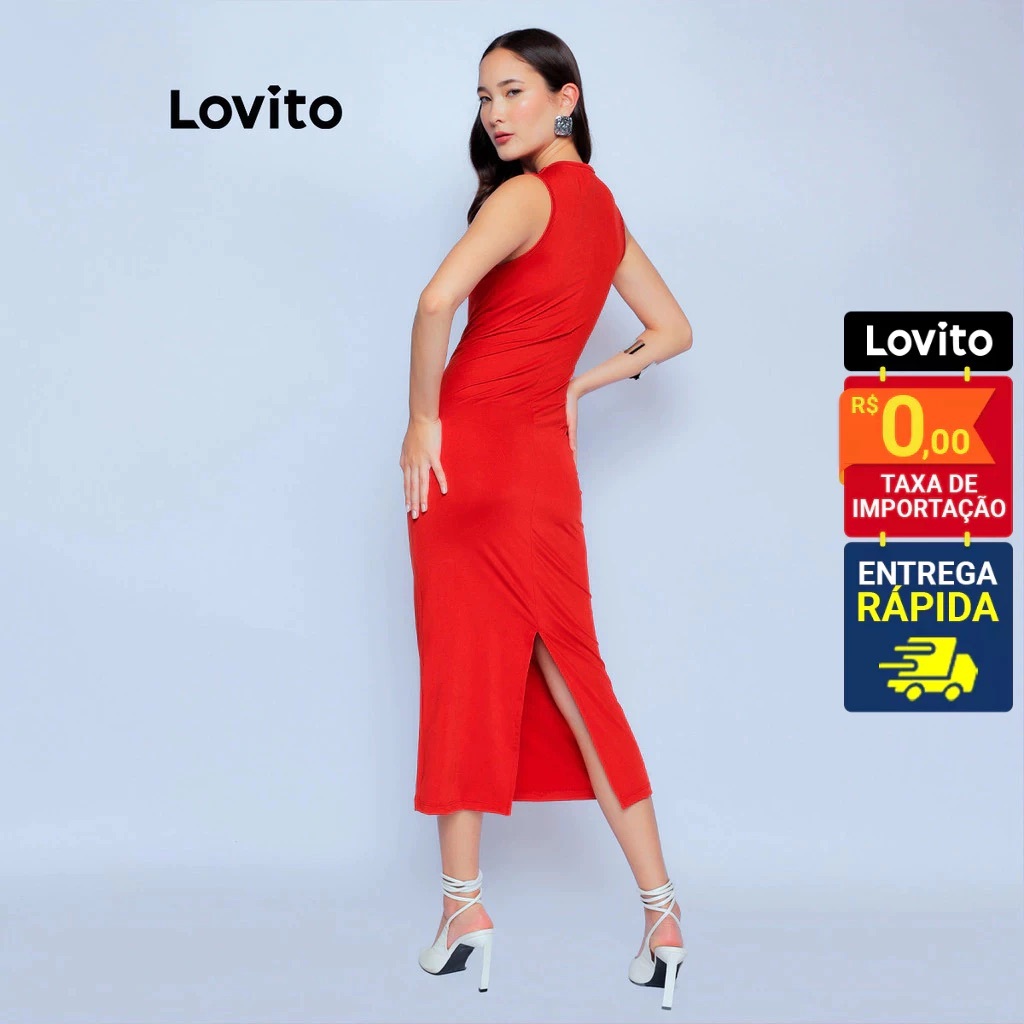 Lovito Vestido Feminino de Malha com Decote Assimétrico DRB1175BRL1205