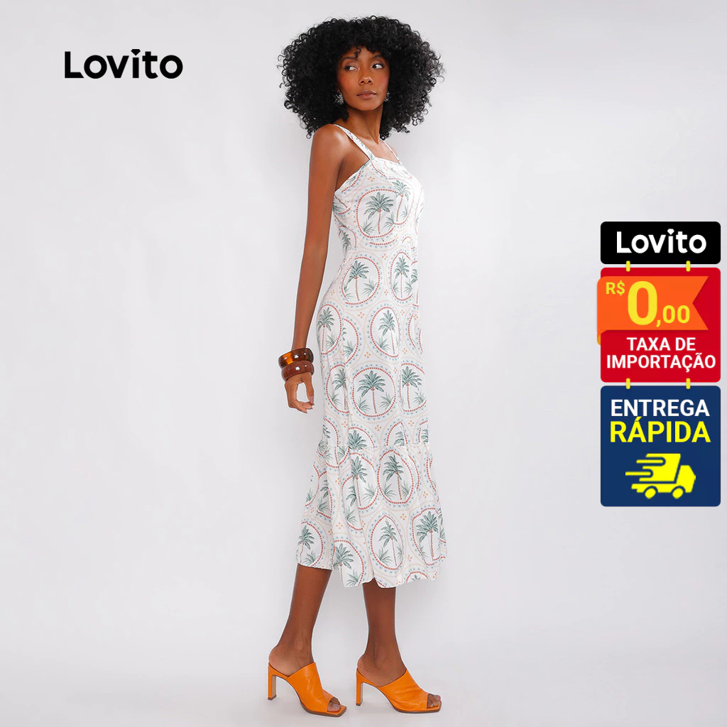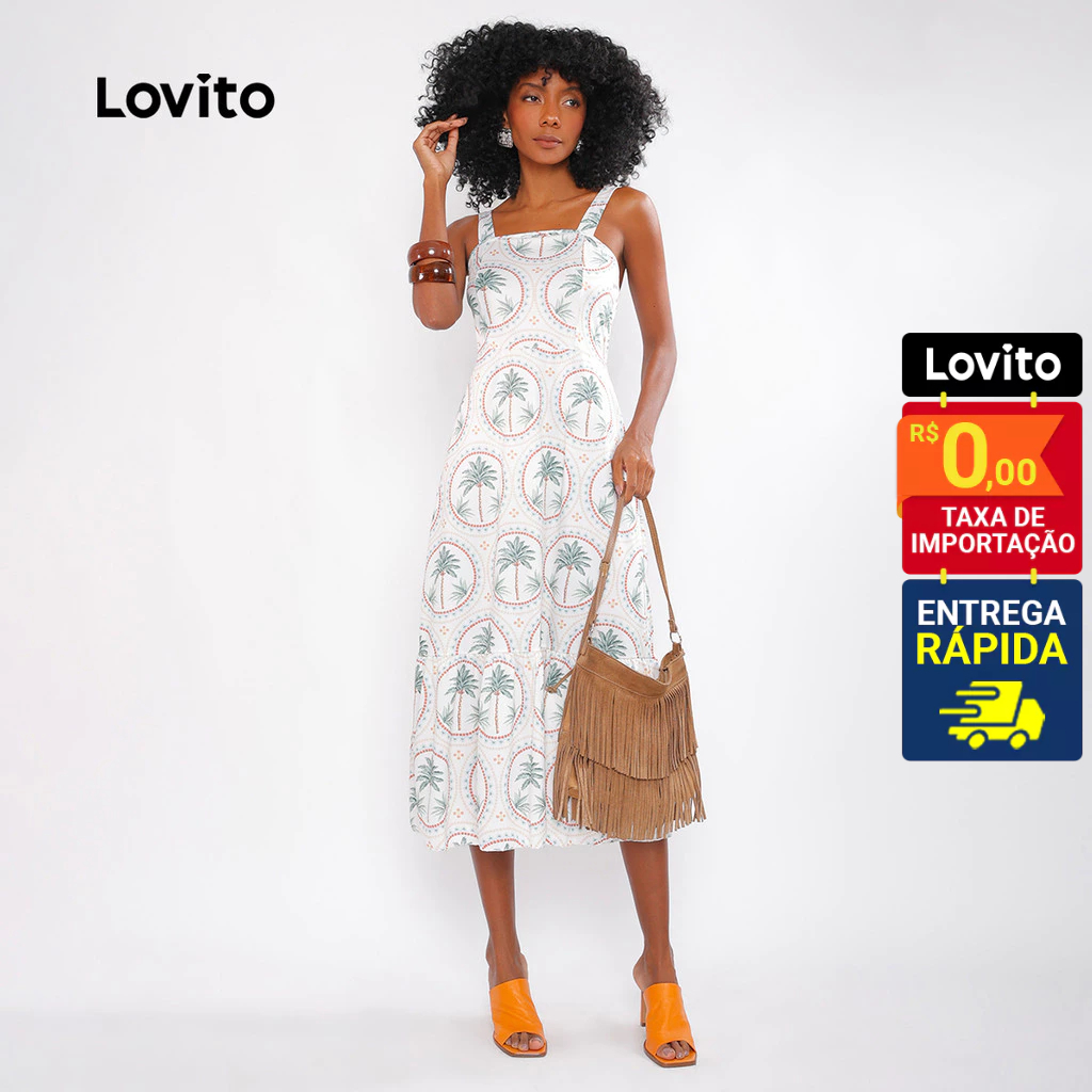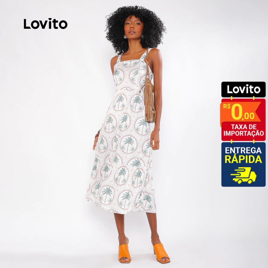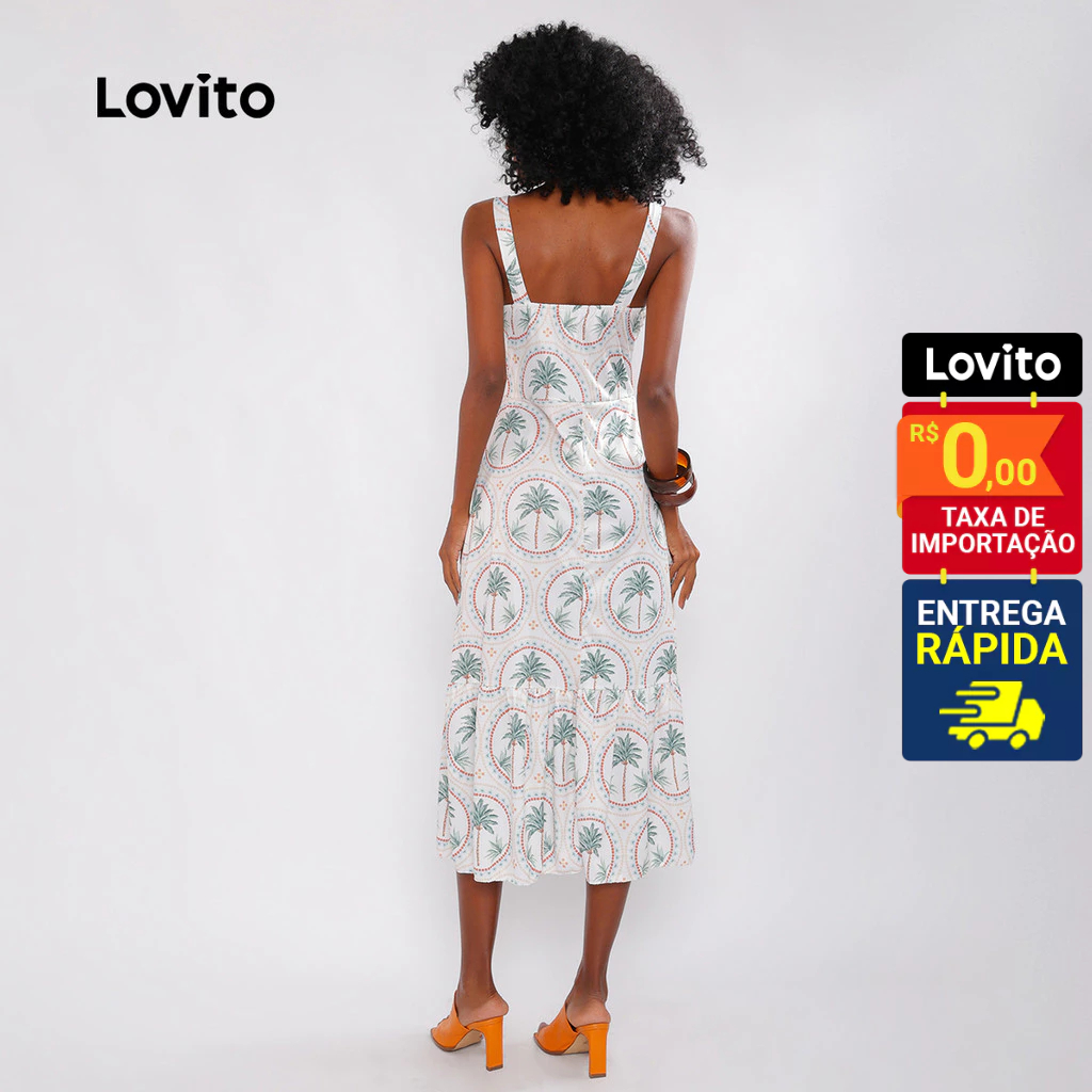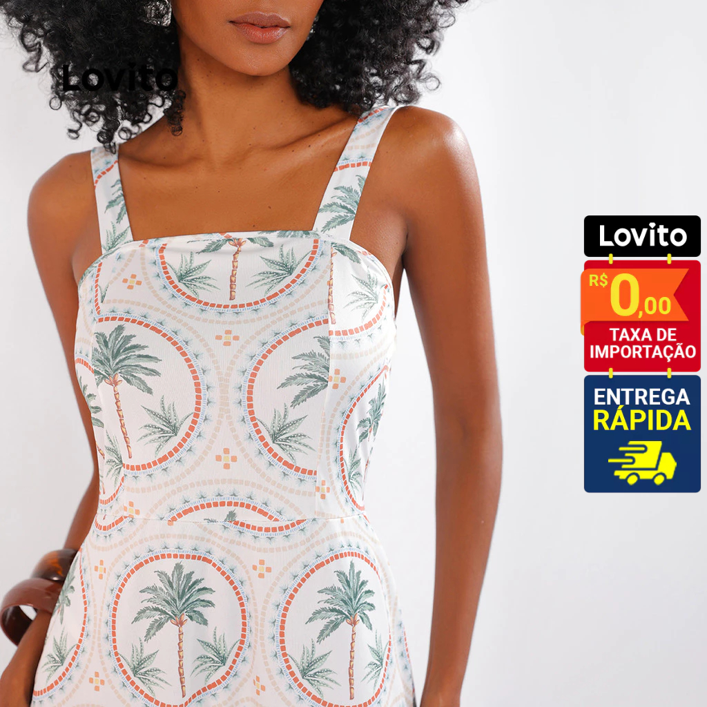 Lovito Bossa | Vestido Casual com Estampa de Plantas Feminino DRB481BRL511
