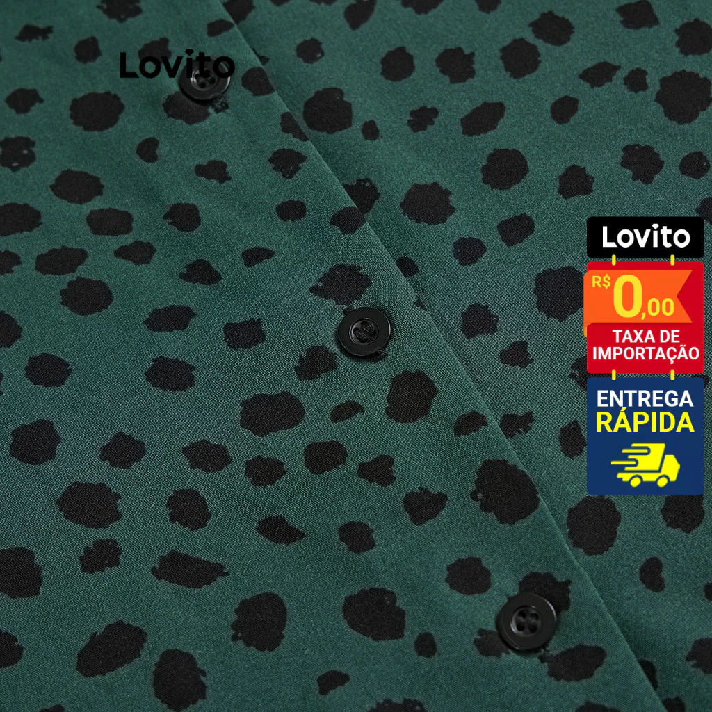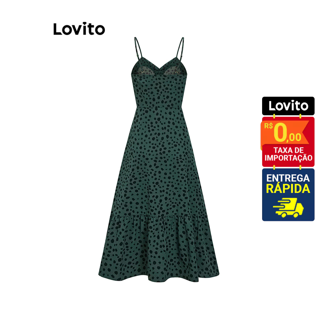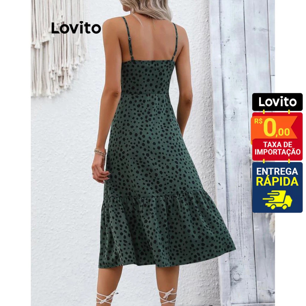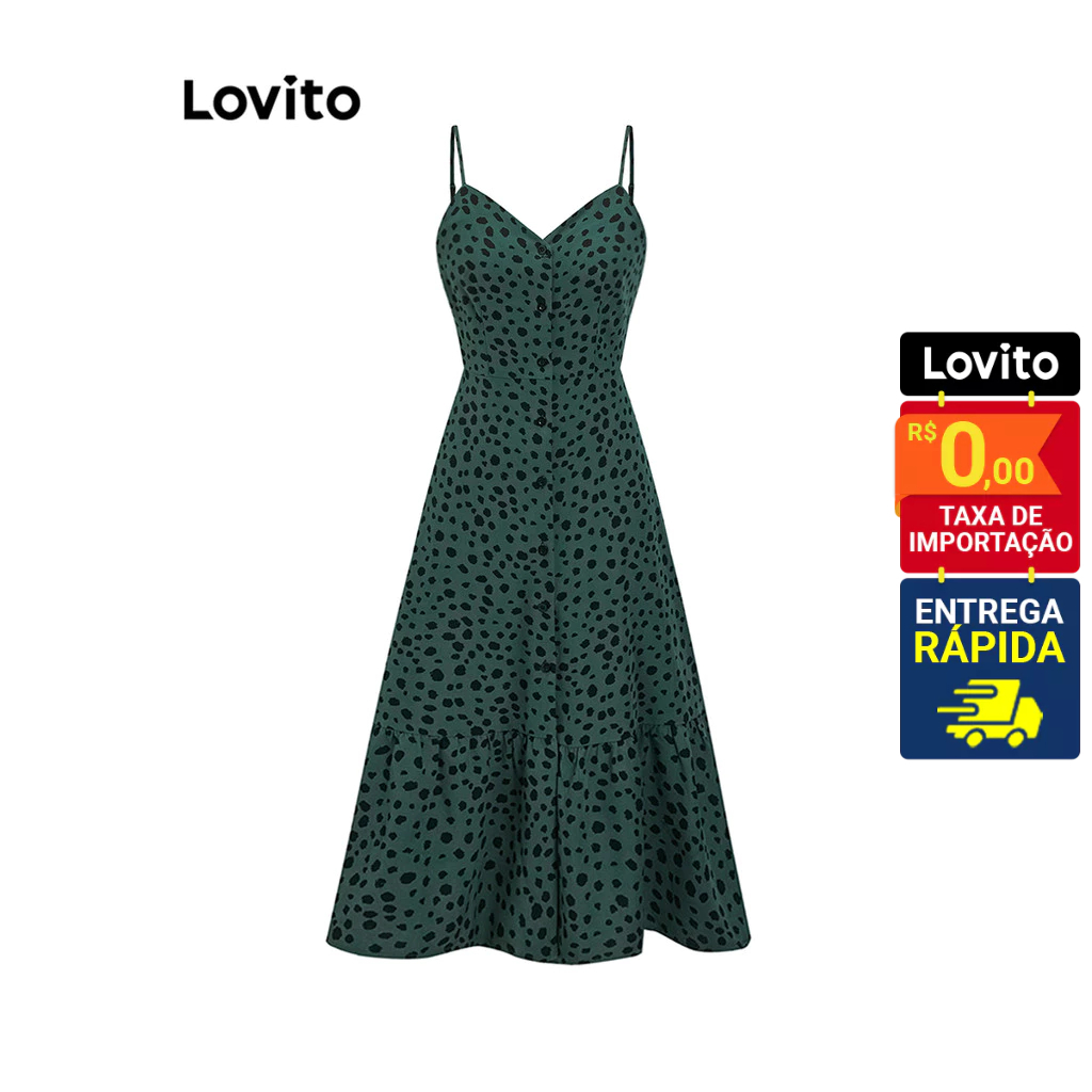Lovito Vestido Feminino Midi de Alcinha e Botão Frontal com Estampa Bolinhas DRB4BR079