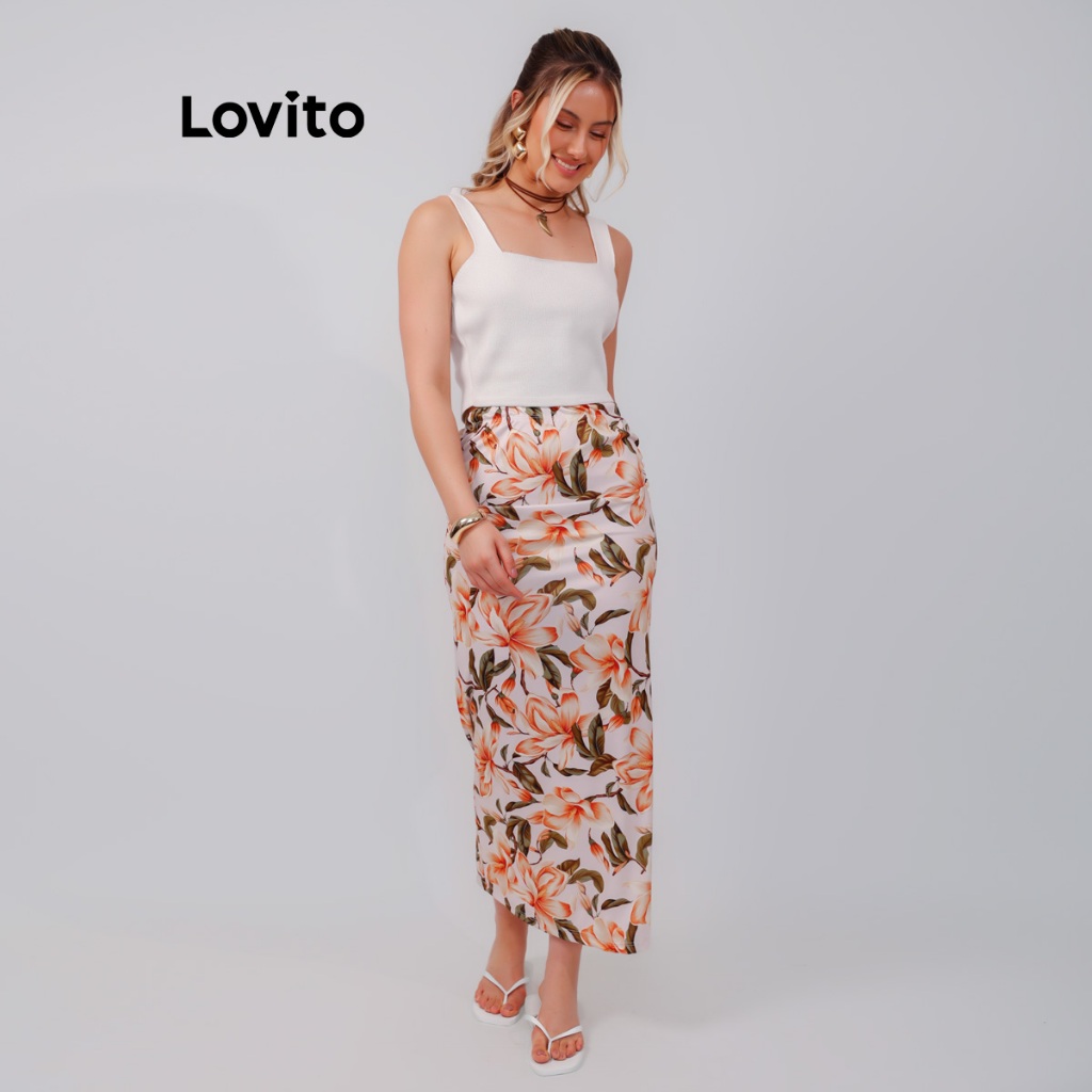Lovito Bossa I Saia Feminina Longa Estampa Floral Lírios SKB1262BRL1292