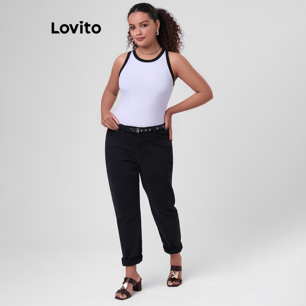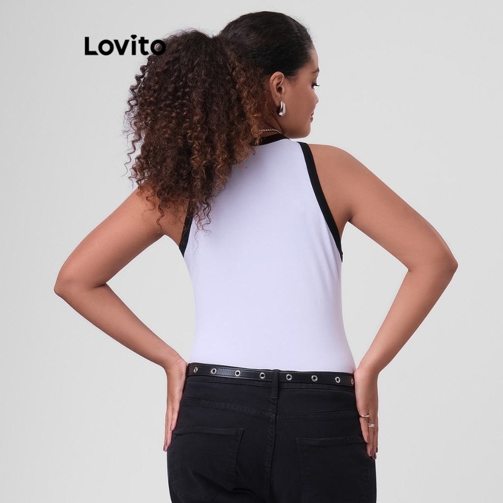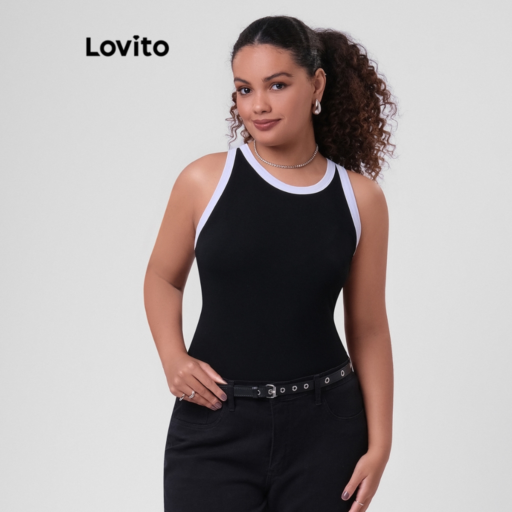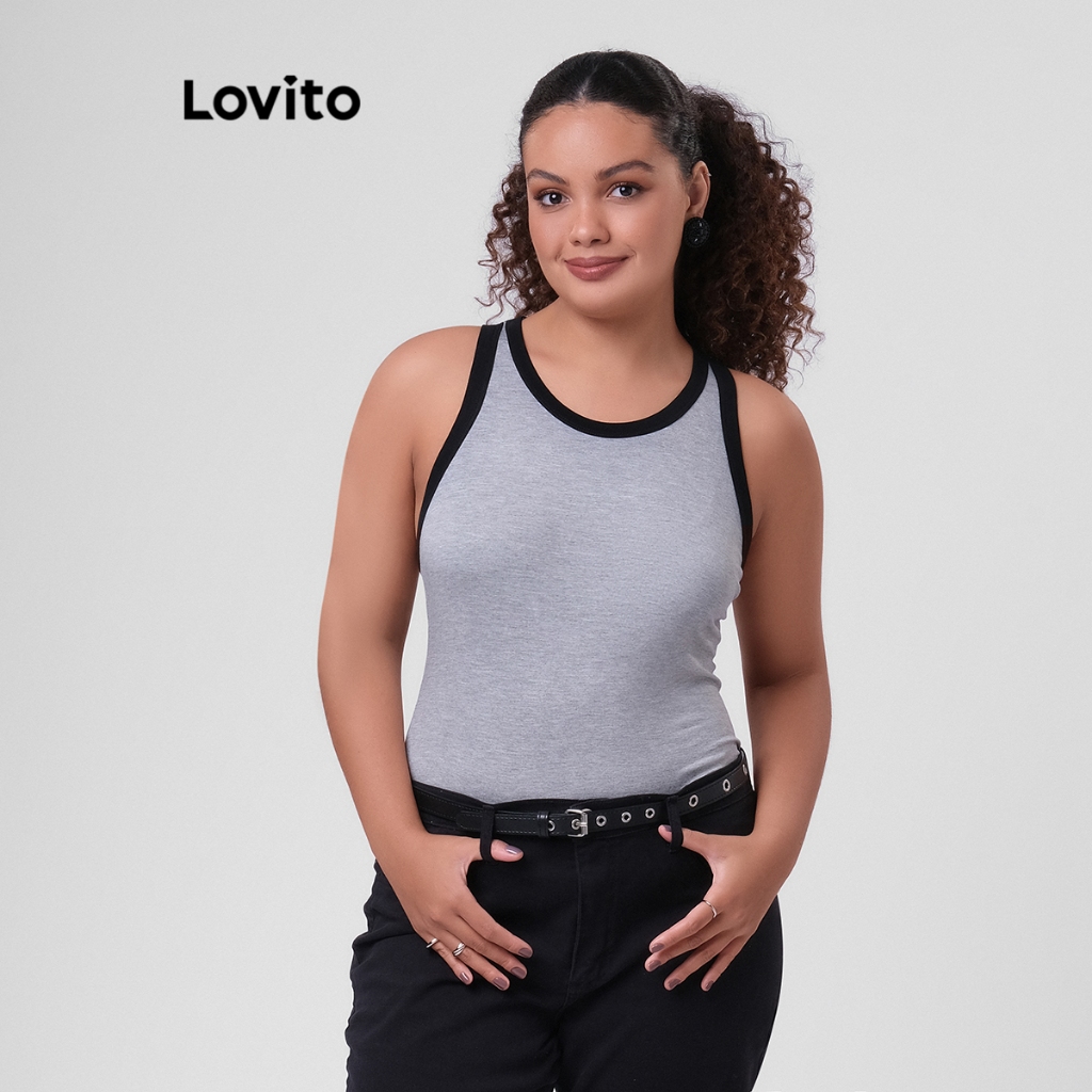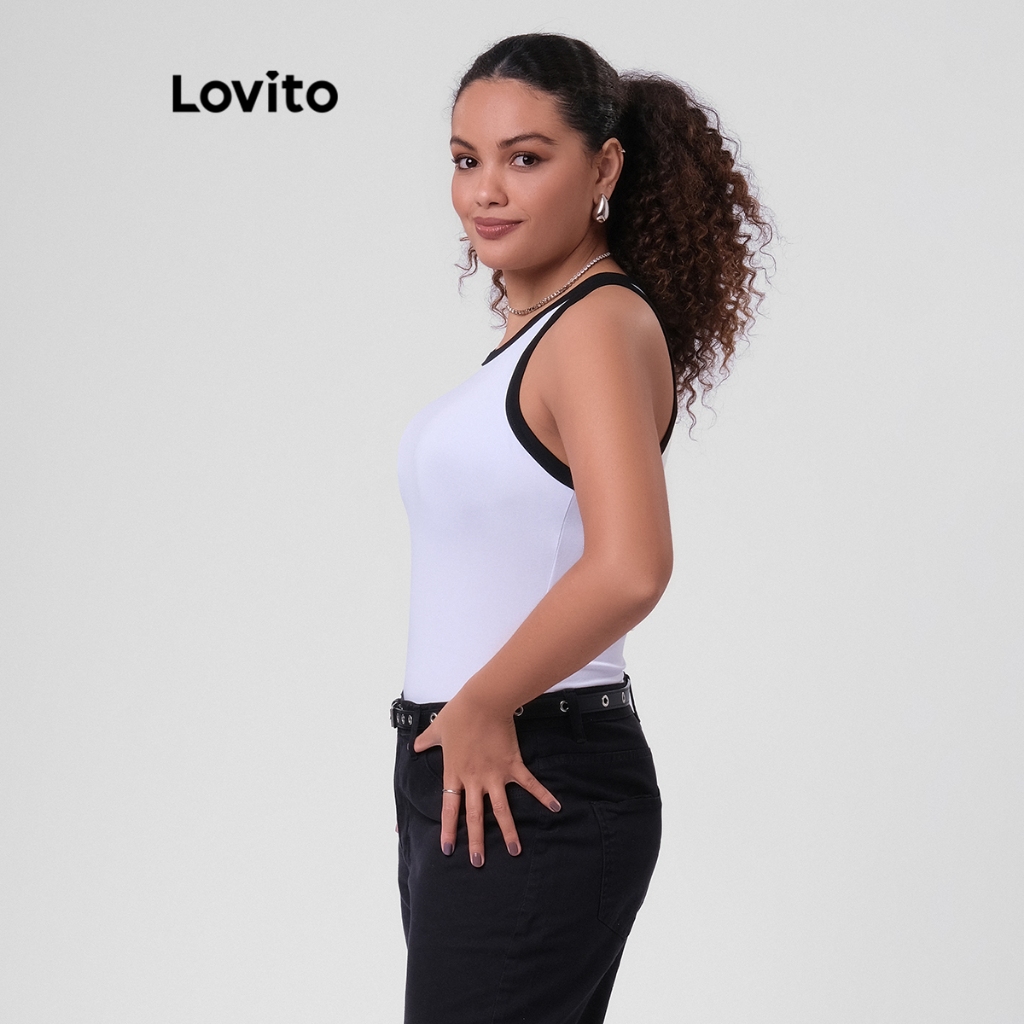 Lovito Regata Casual Feminina Plus Size Alça Contrastante TKB249BRL278