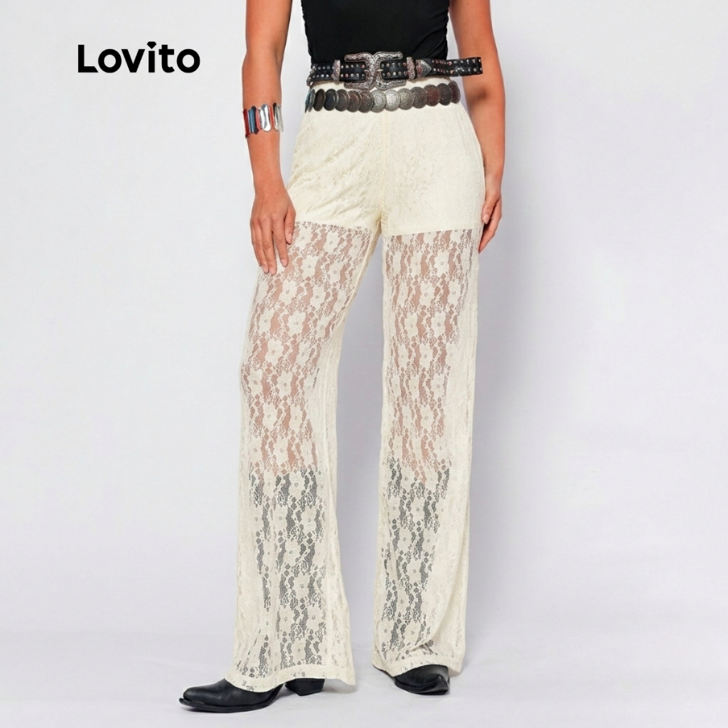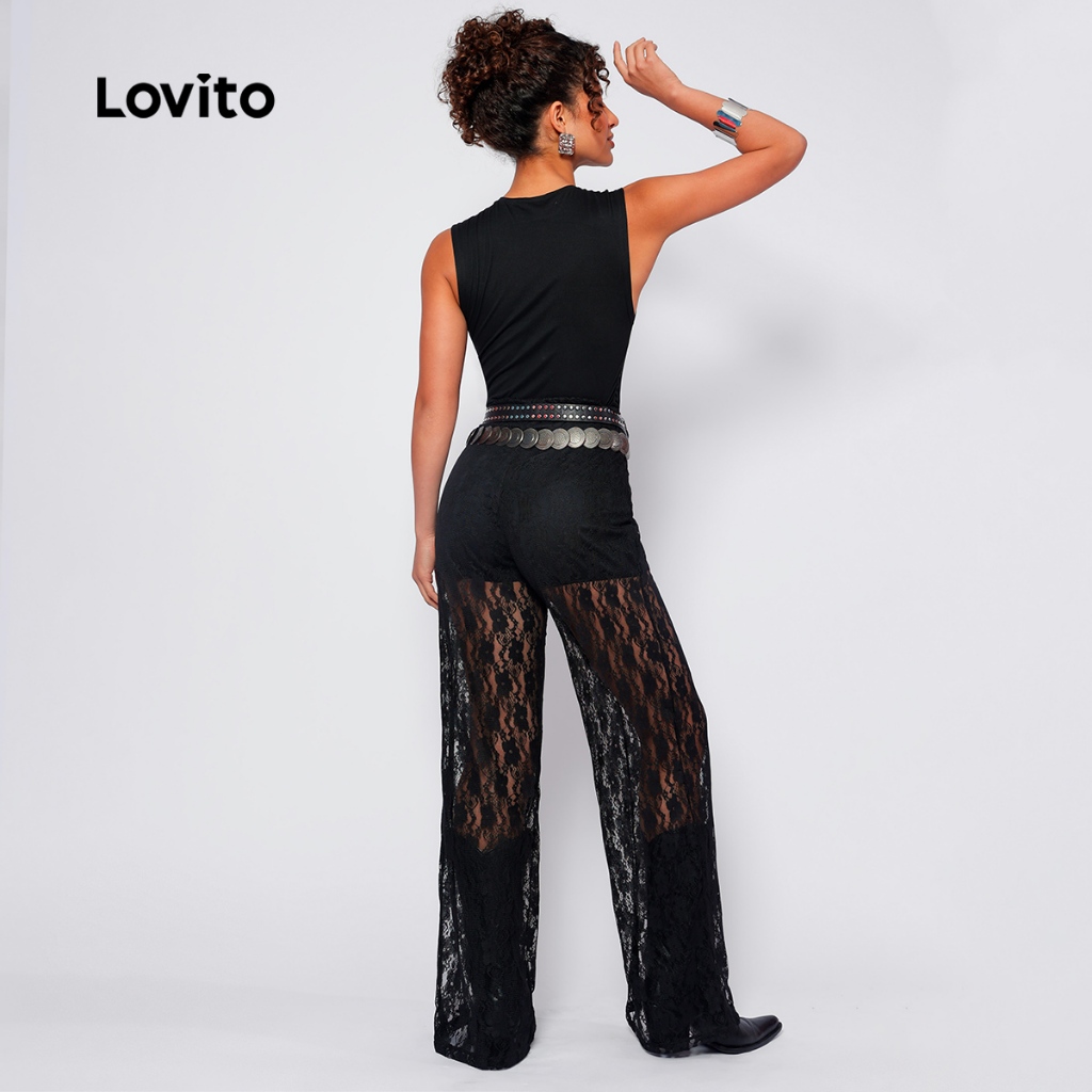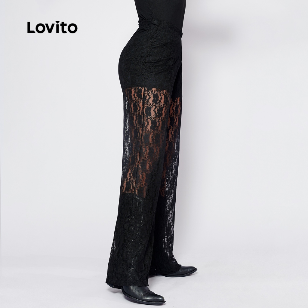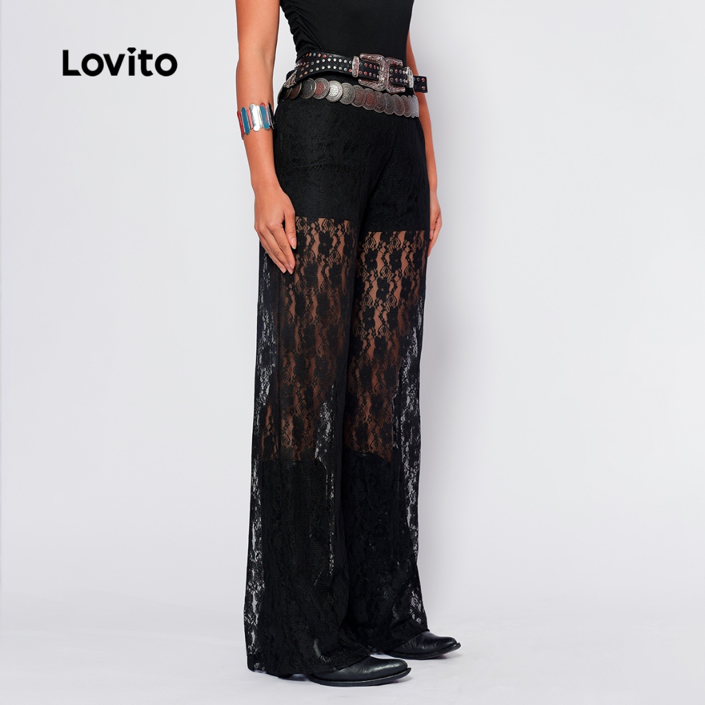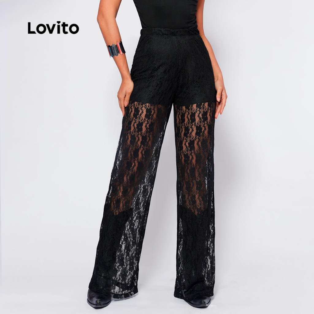 Calça Renda Feminina com Forro Estilosa Longa Moda Festival BRPTB1016BRL1046BK