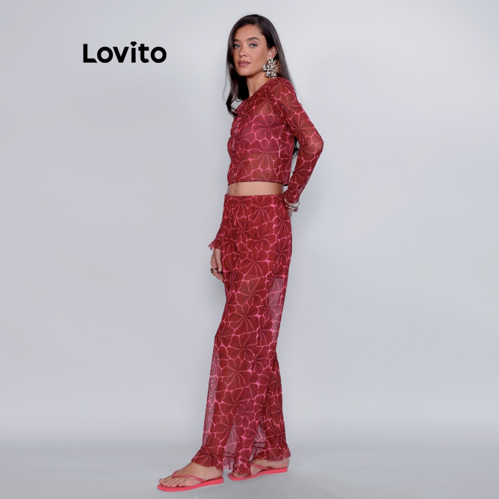 Lovito Bossa l Blusa Cropped Feminina em Tule, Estampa Floral Com Recortes Centralizados BLB1575