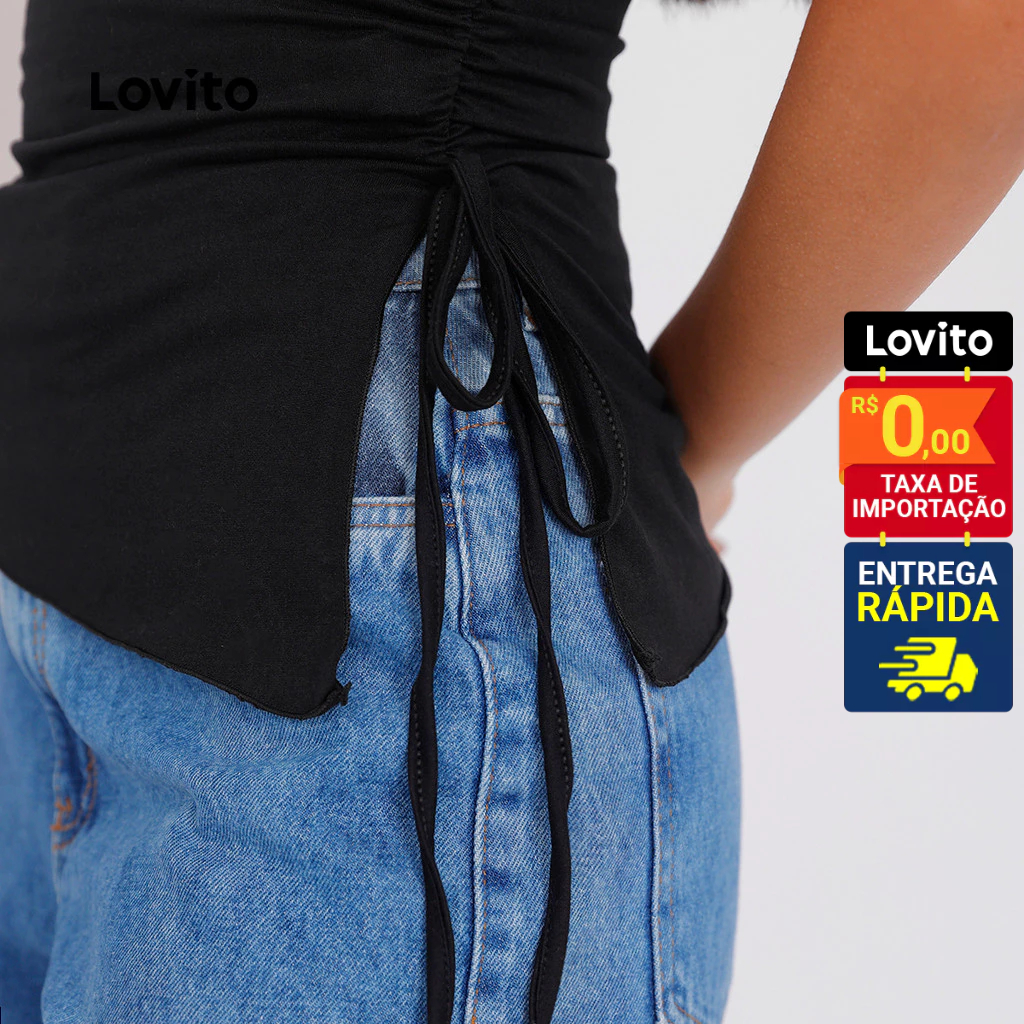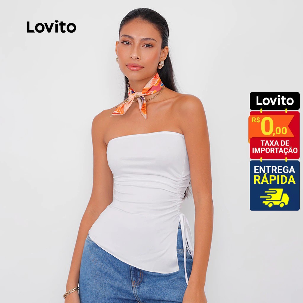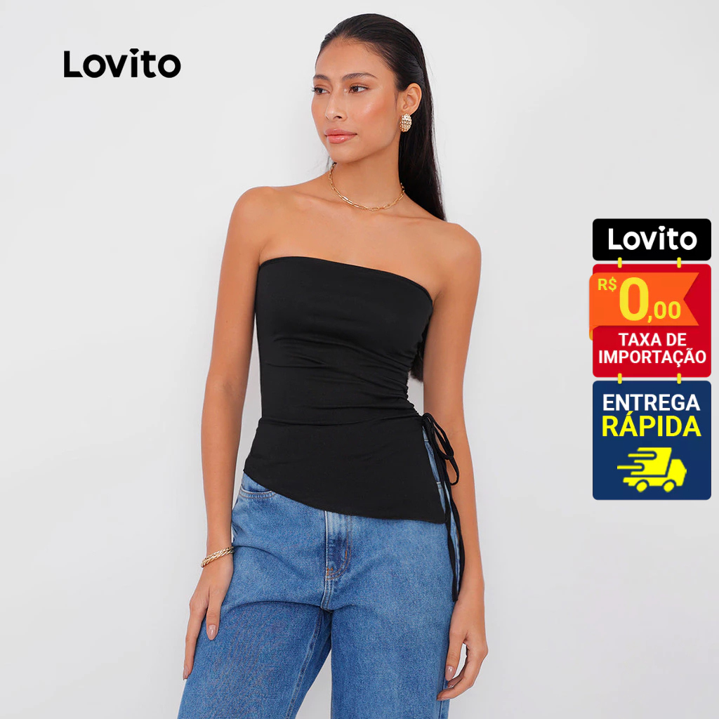 Lovito Top Sem Alças Assimétrico com Ajustador Lateral Basico Feminino TKB68ED053