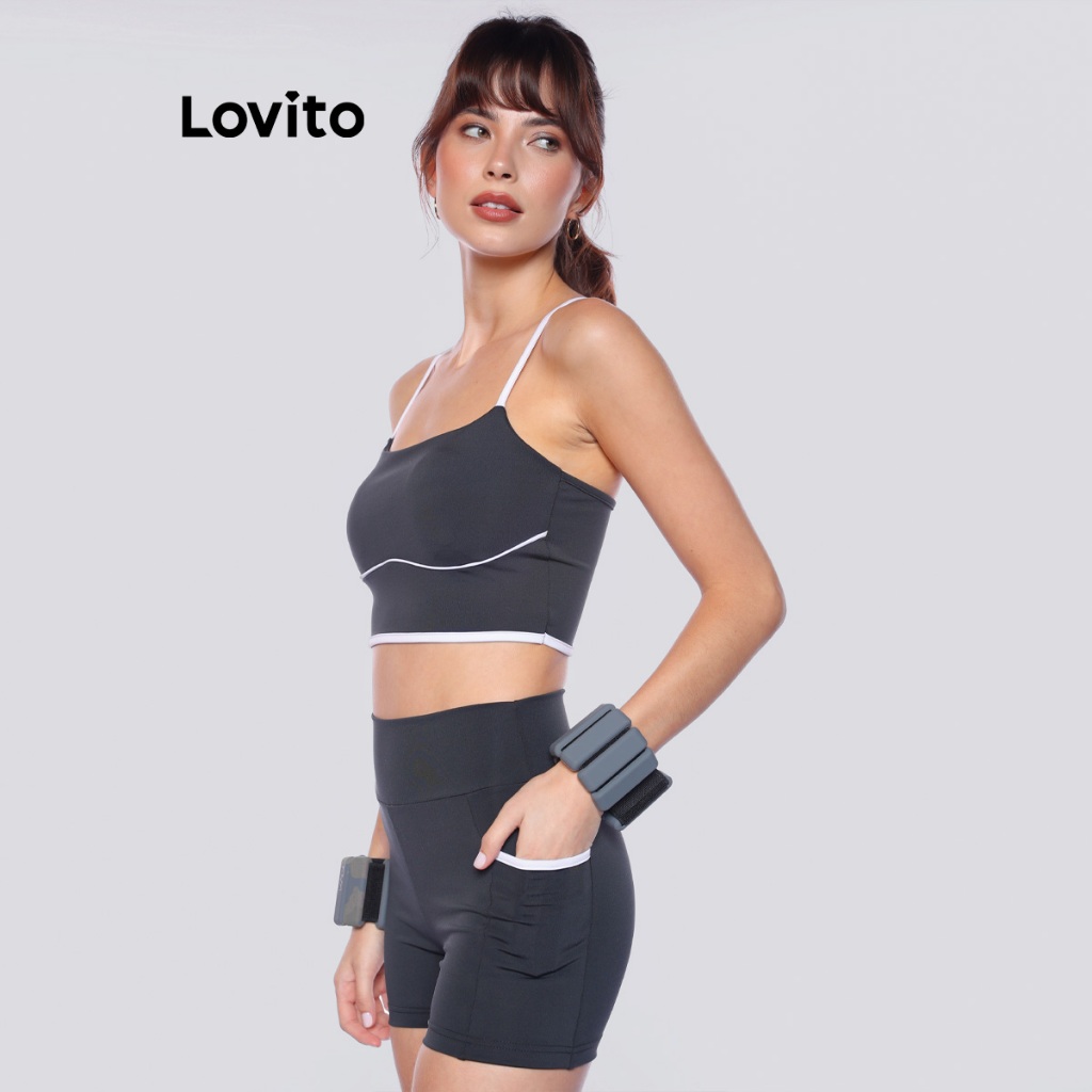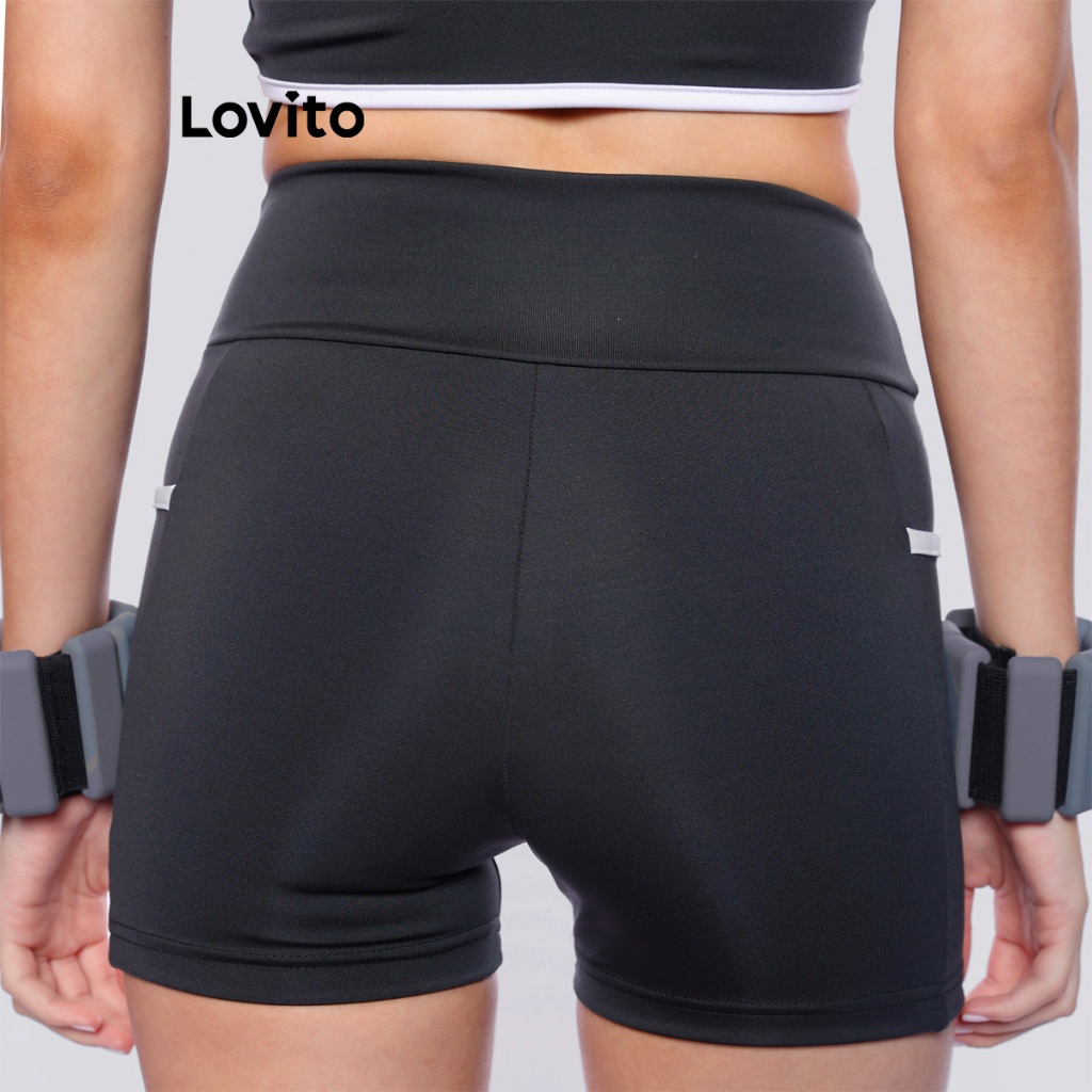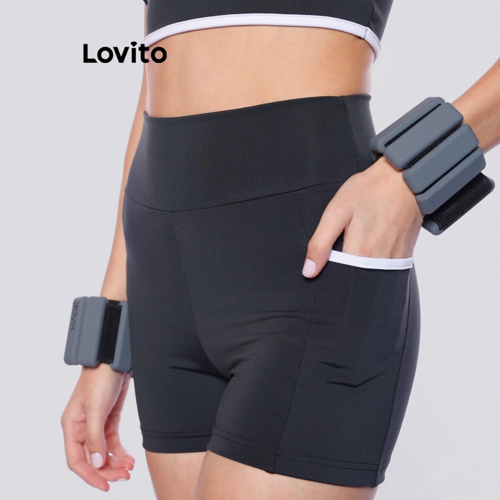 Lovito Bermuda Feminina Esportiva com Bolso Lateral e Viés Contrastante