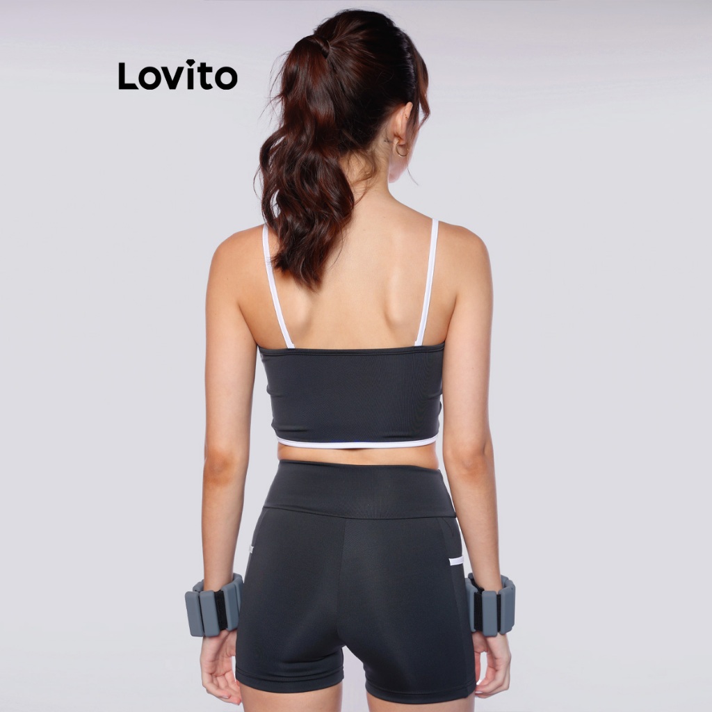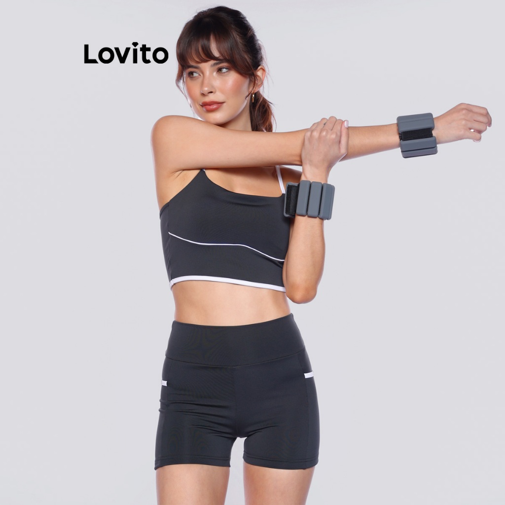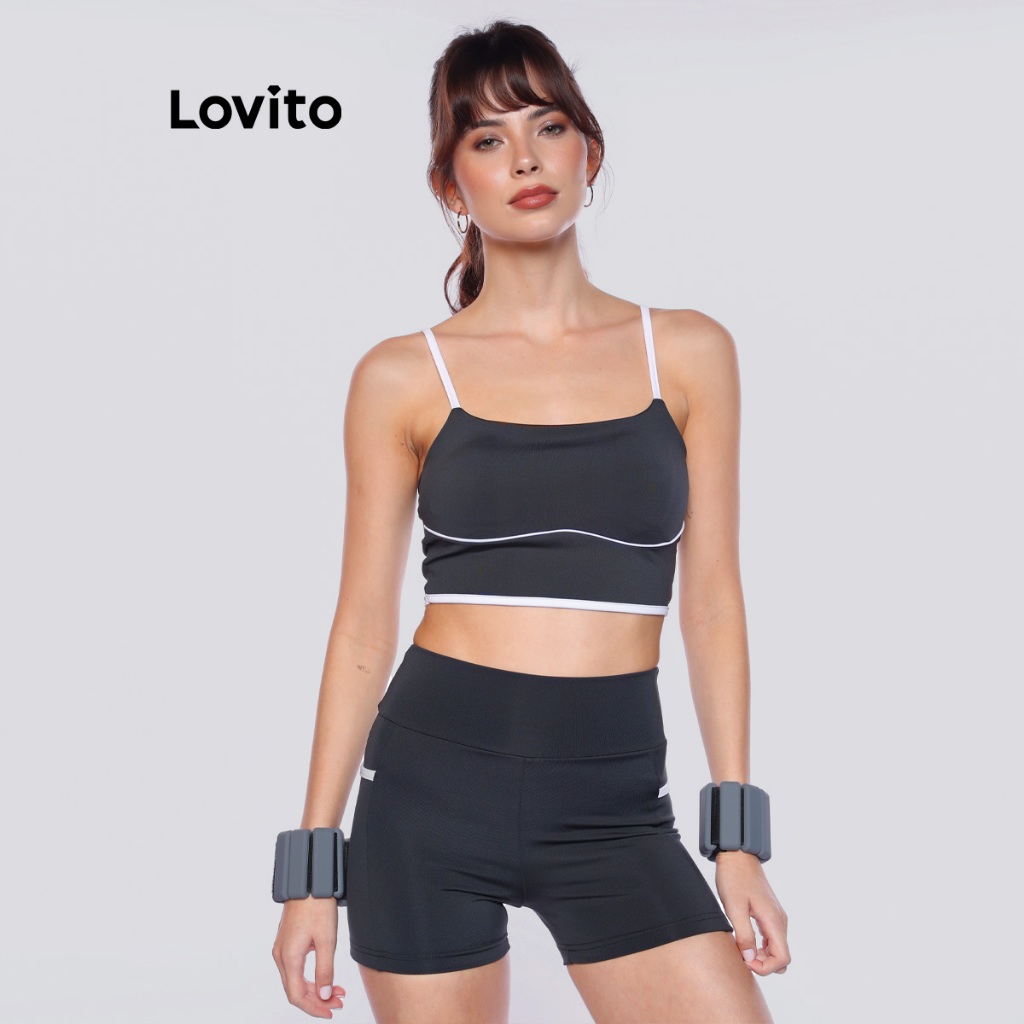 Lovito Bermuda Feminina Esportiva com Bolso Lateral e Viés Contrastante