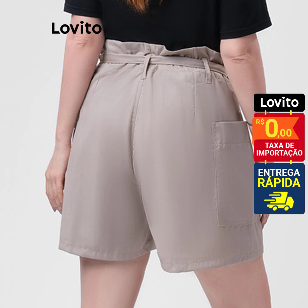 Lovito Plus Size Shorts Clochard com Cinto Basico Feminino SHB188BRL217