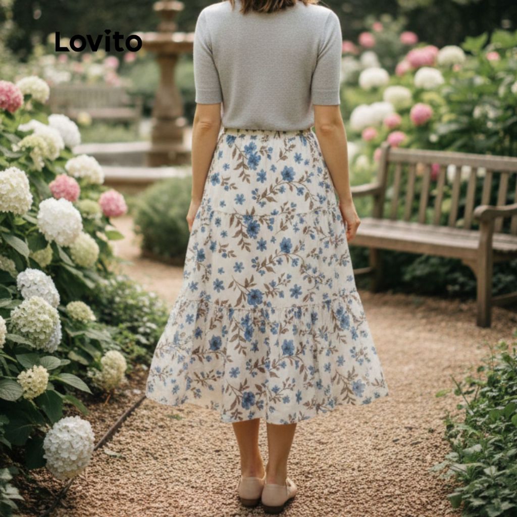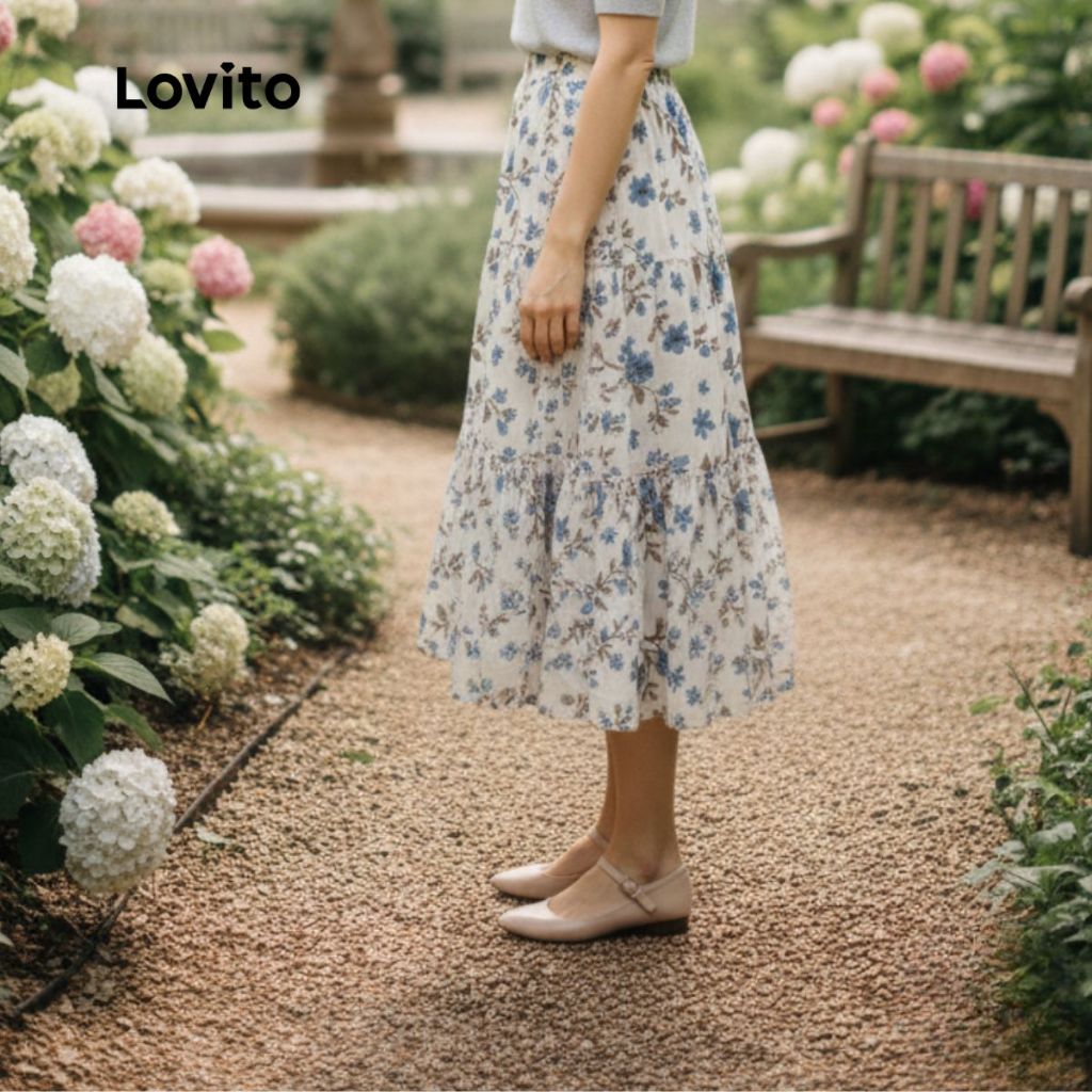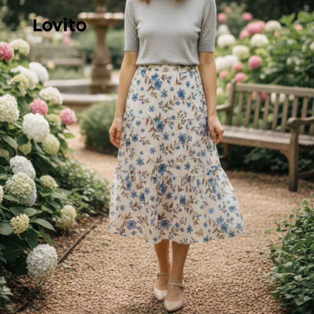 Lovito Saia Estampada Moda Modesta Evangelica Rodada Estampa Floral Feminina BRSKB16301660