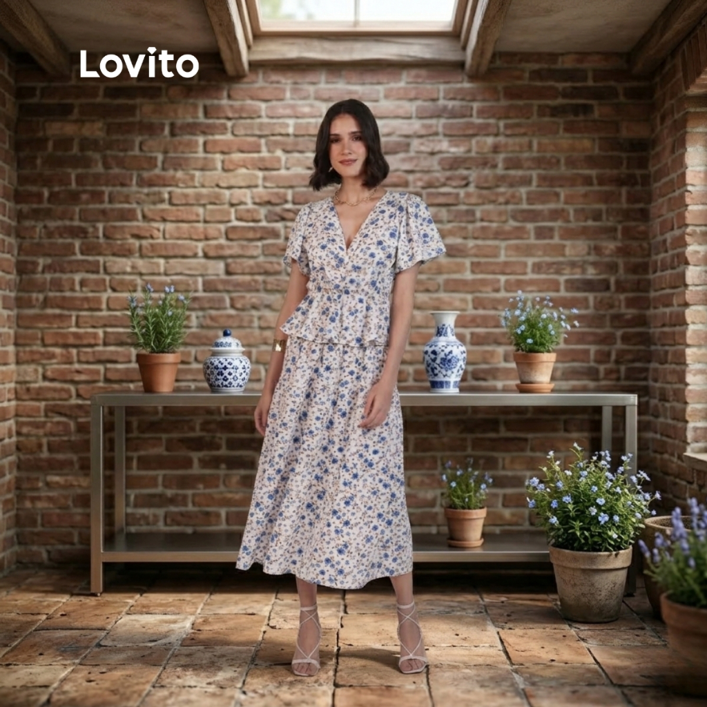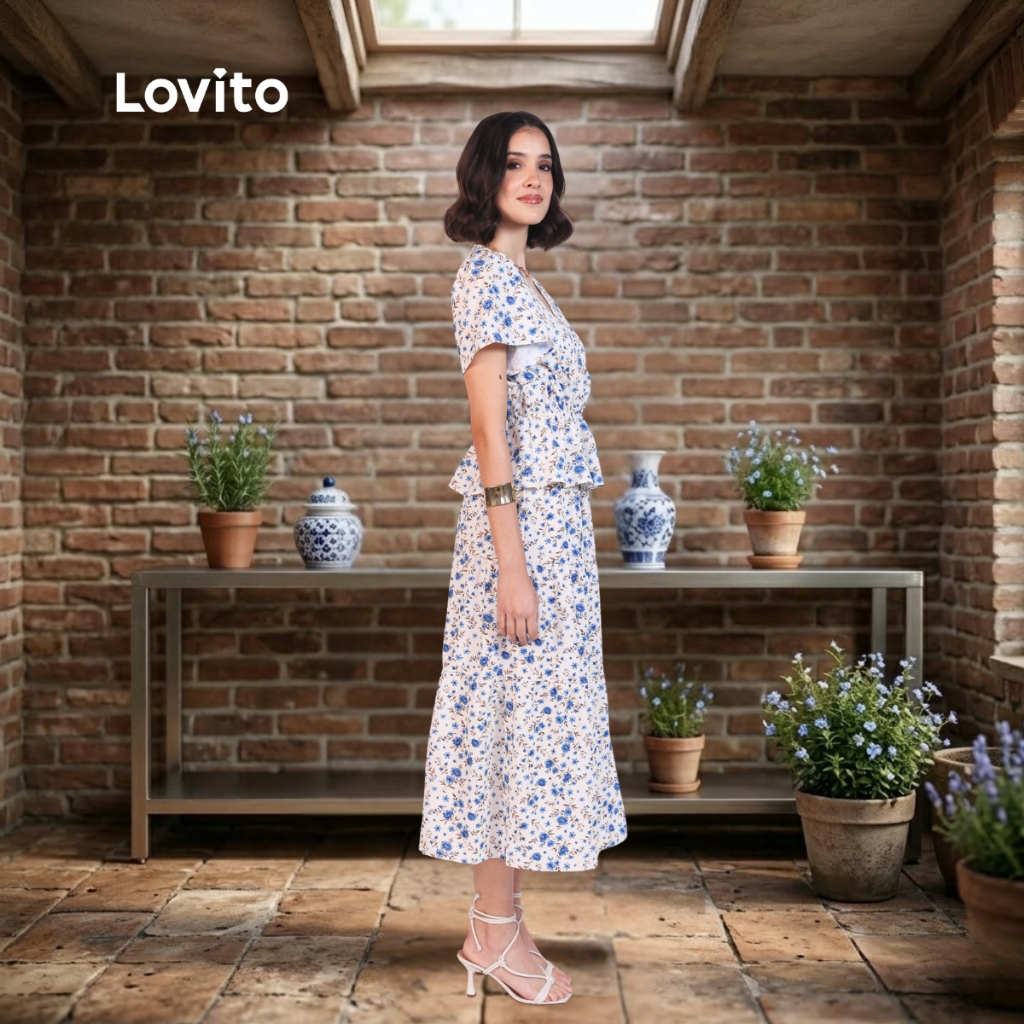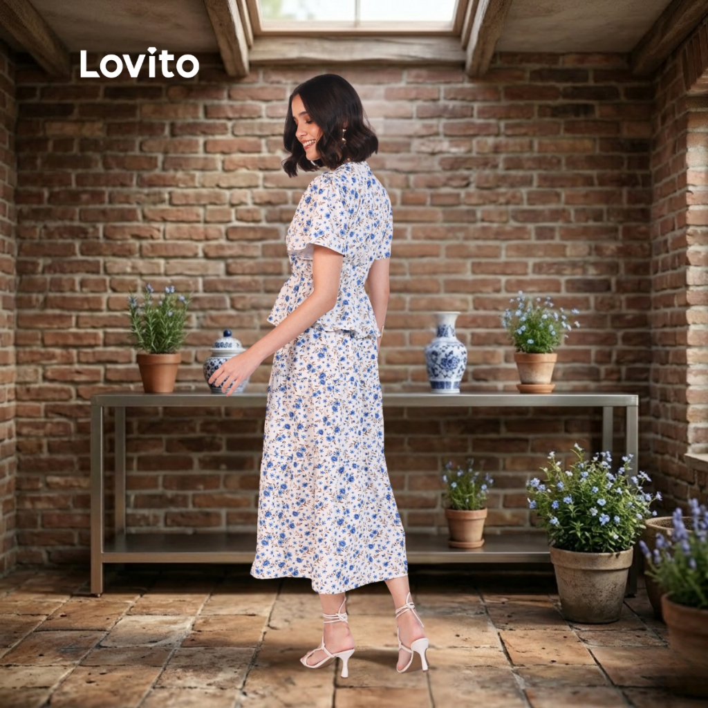 Lovito Saia Estampada Moda Modesta Evangelica Rodada Estampa Floral Feminina BRSKB16301660