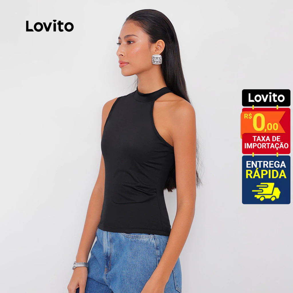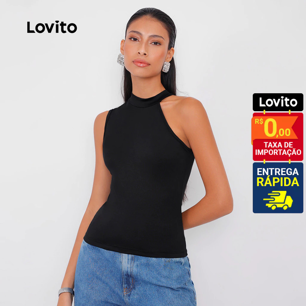 Lovito Regata Feminina Gola Assimétrica Lisa TKB83ED126