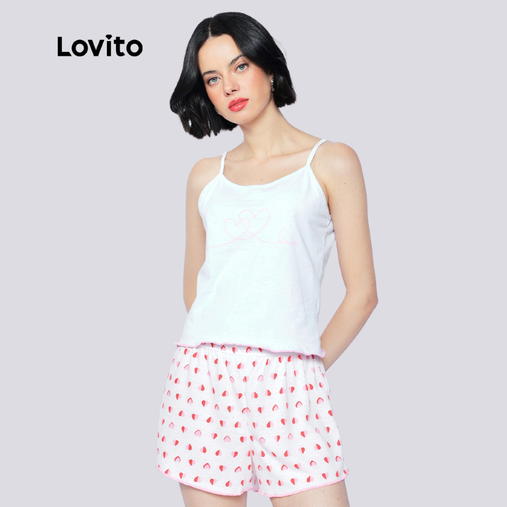 Lovito Pijama Top e Shorts Estampa Coração e Detalhe Barra KPB1420BRL1450