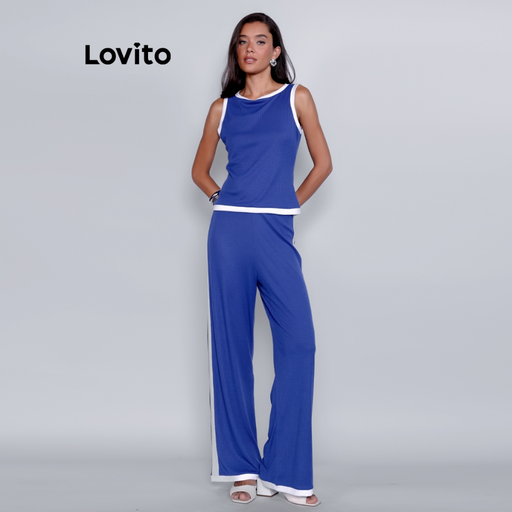 Lovito Conjunto Regata e Calça Malha Canelada Listra Lateral PSB1189BRL1219